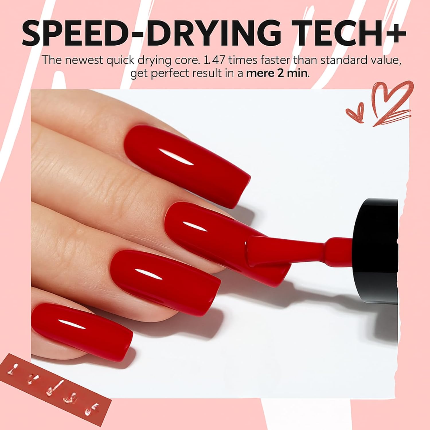 【QUICK-DRY & LONG-LASTING FORMULA】 Engineered with a fast-dry, chip-resistant finish, this quick-dry nail polish gives you vibrant colour that stays put. Enjoy a glossy, professional-looking manicure for days.
