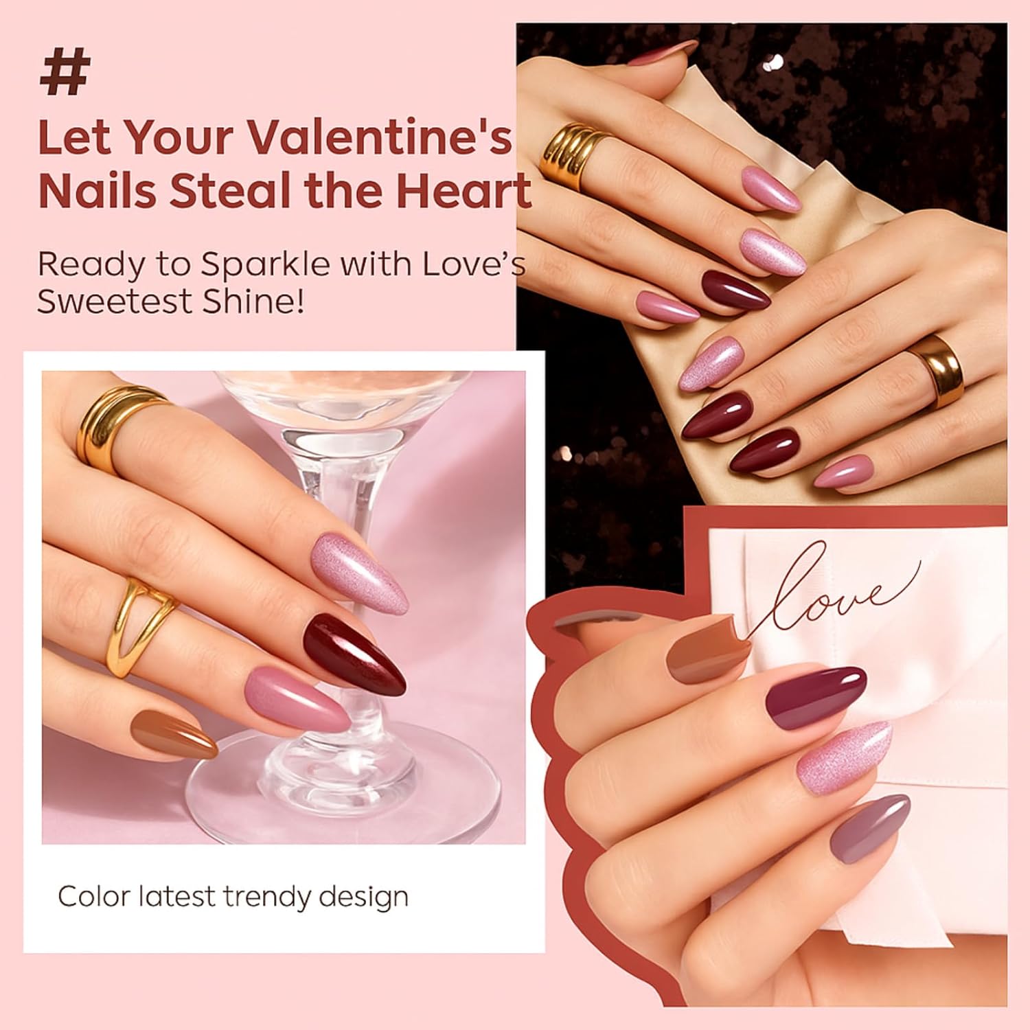 Colours: 6 on-trend shades (e.g., nude, pink, red, glitter, pastel, bold)