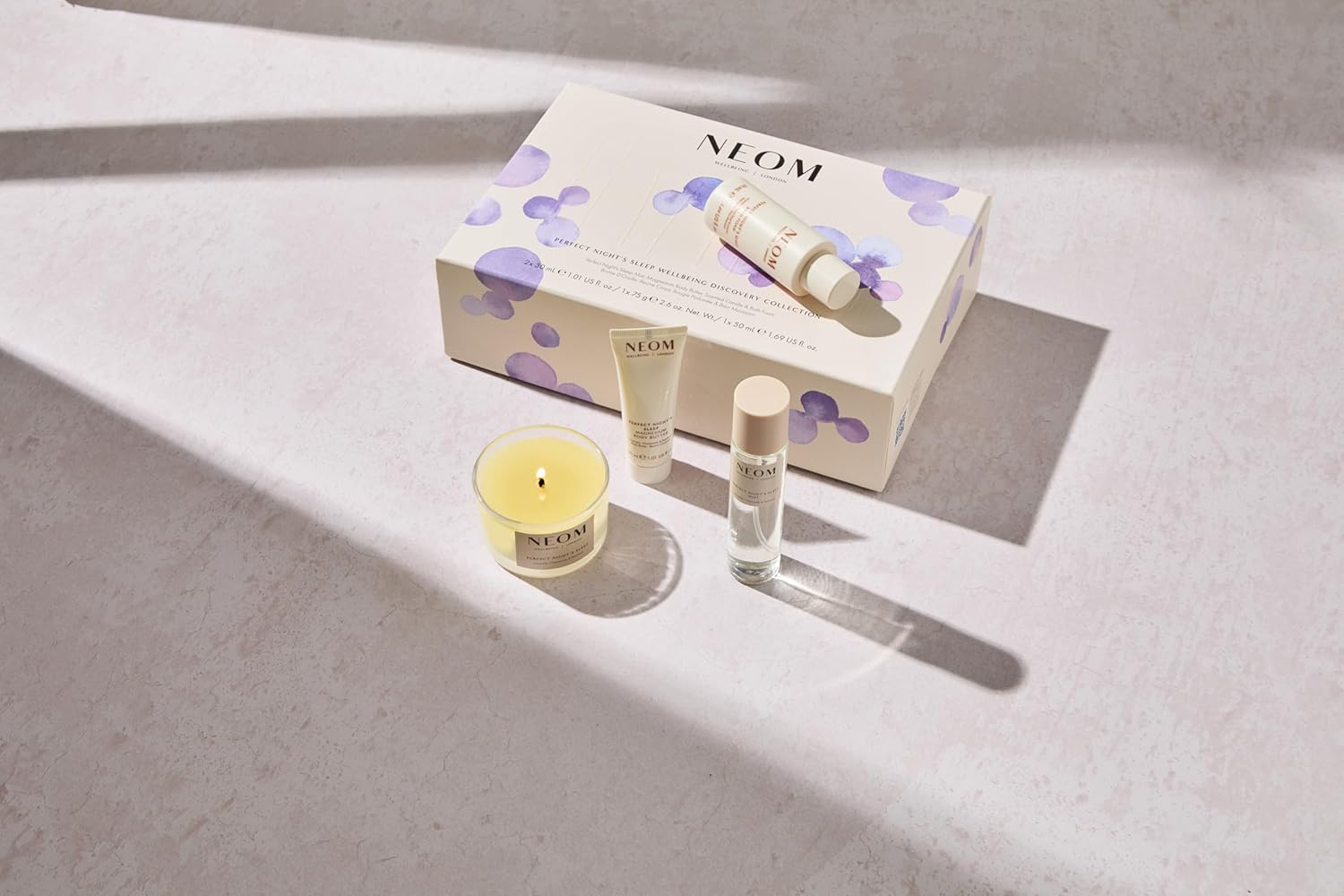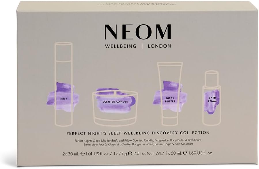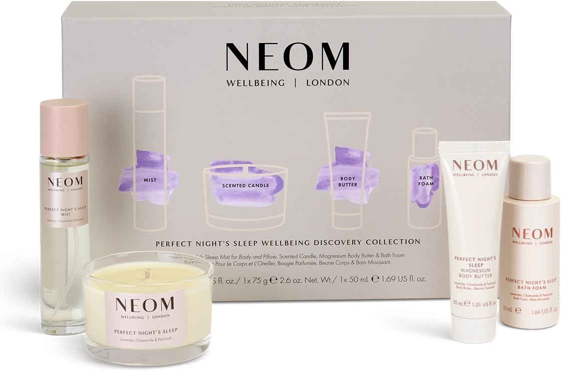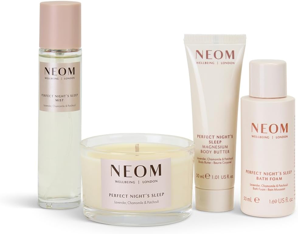 NEOM Perfect Night’s Sleep Wellbeing Discovery Collection Gift Set I Perfect Night’s Sleep Mist 30ml, Magnesium Body Butter 30ml, Bath Foam 50ml and Travel Candle 75g I Ultimate Night Routine