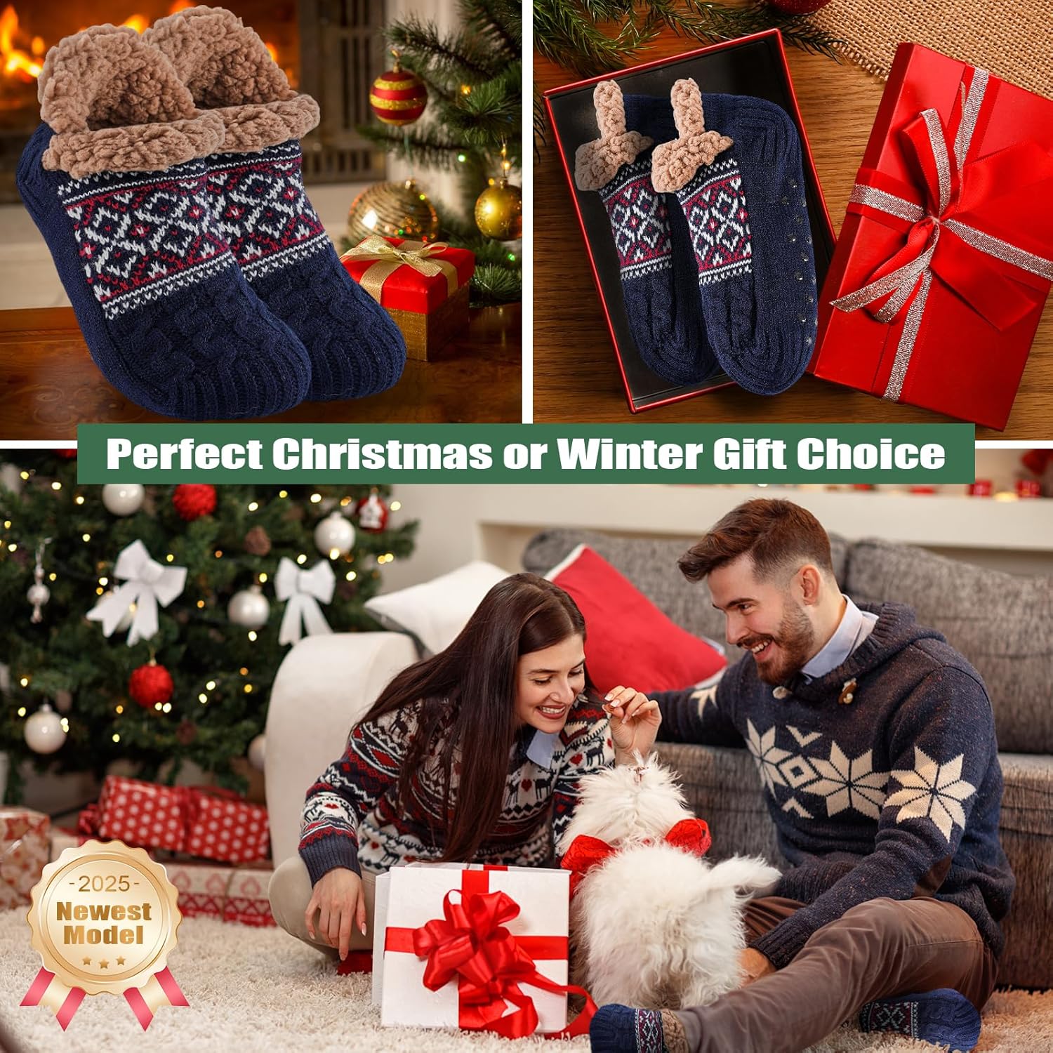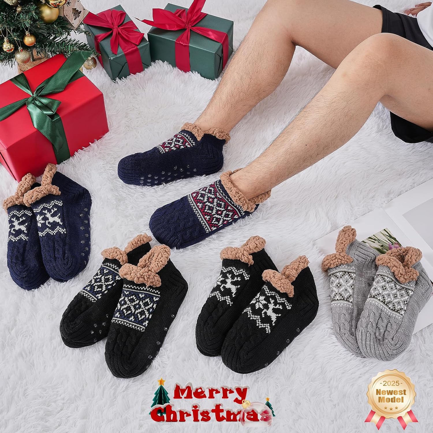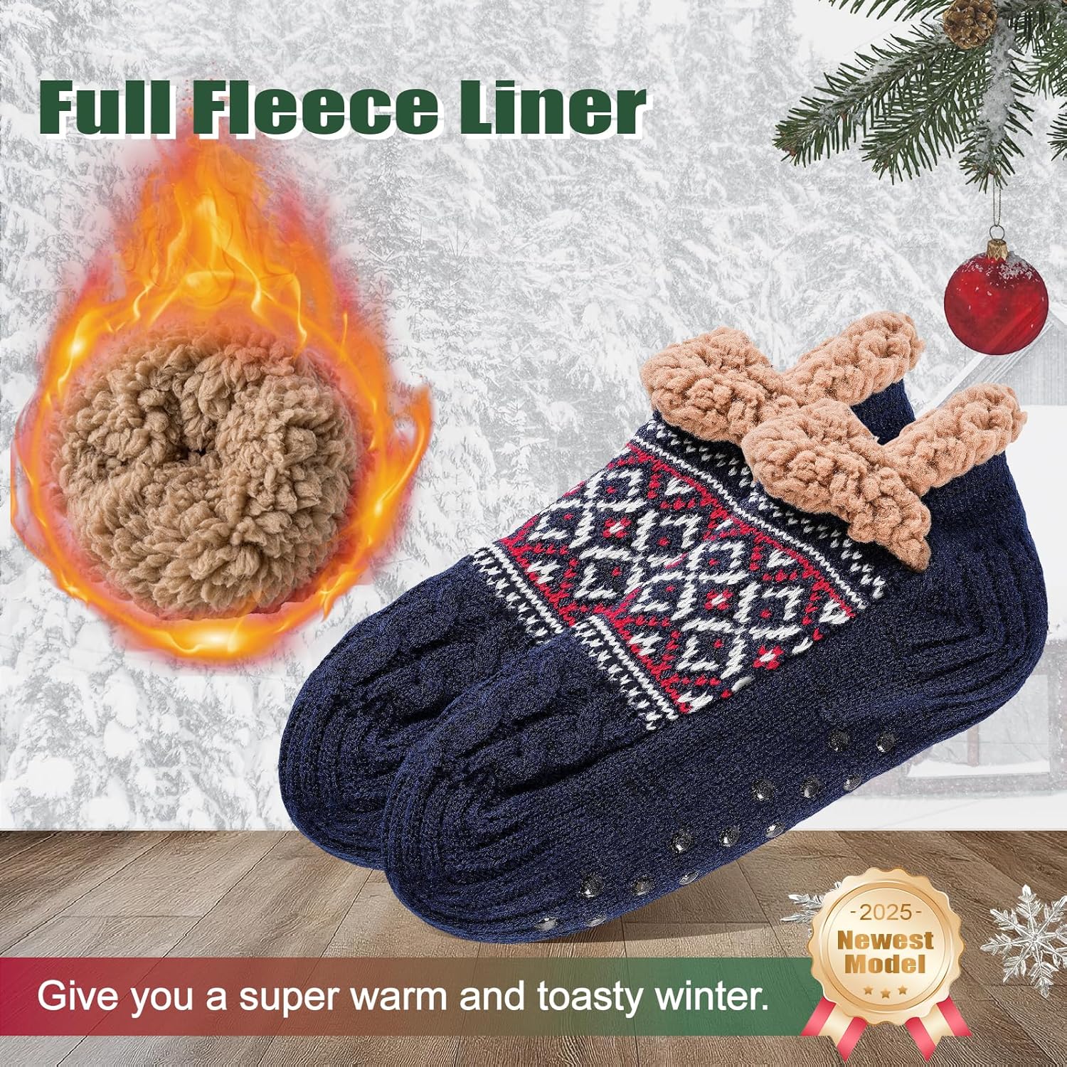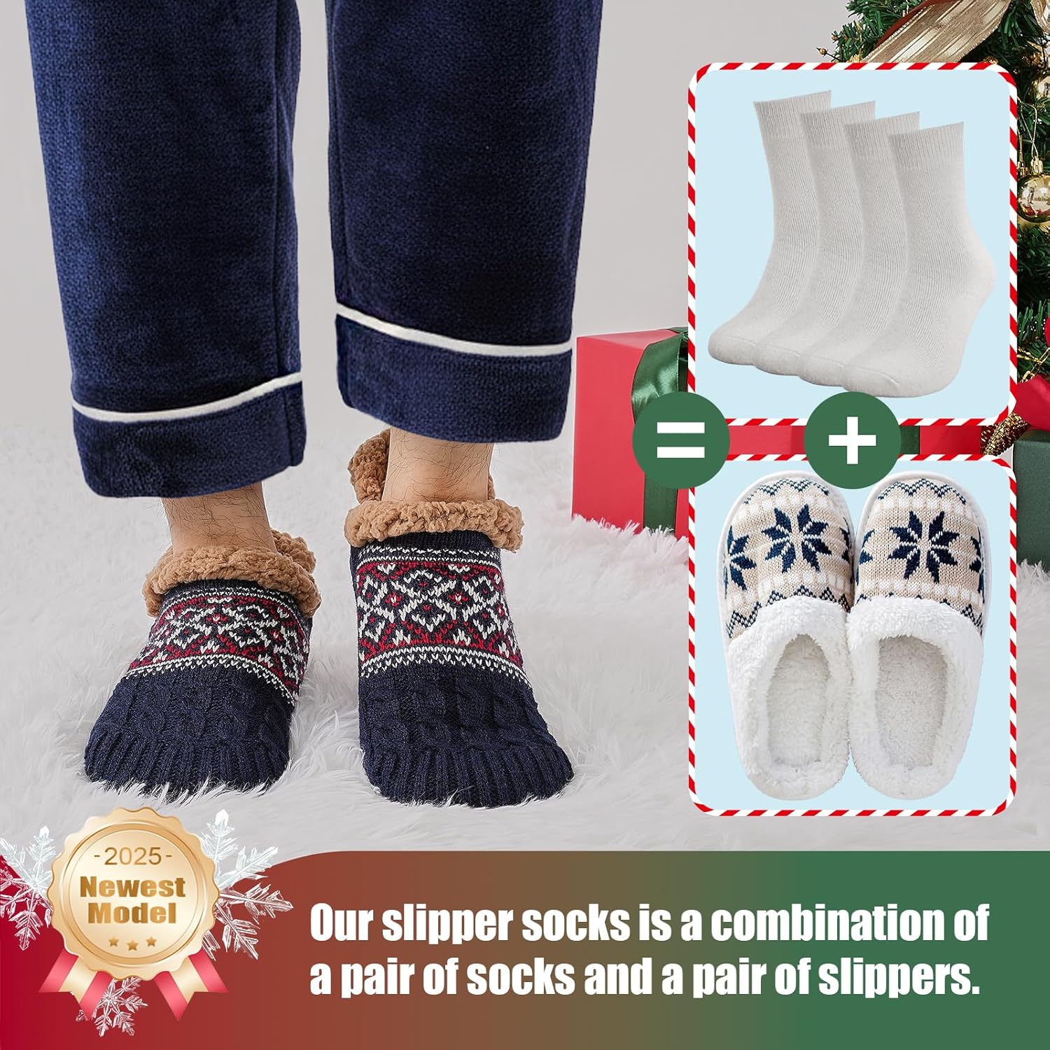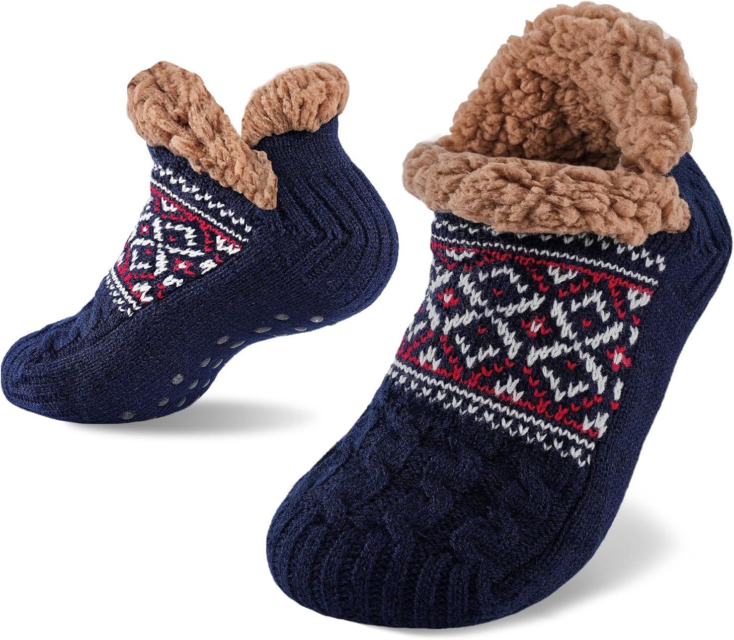 Niorasen Slipper Socks for Men Women, Thick & Soft Thermal Socks with Non-Slip Grippers Cozy Bed Socks, Valentine Gifts for him Husband boyfriend Wife,Size 5-11