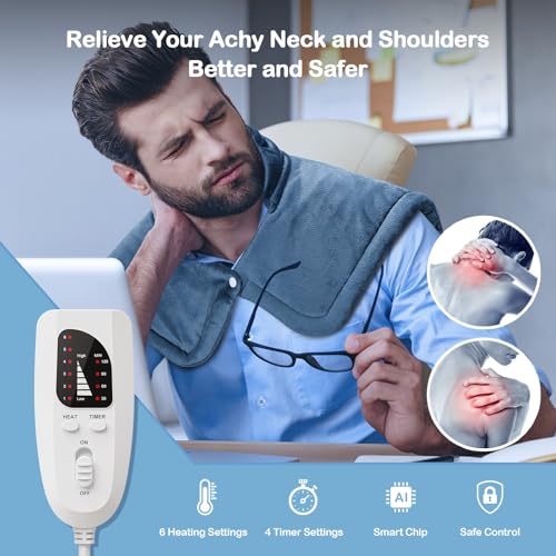 NIUONSIX Heating Pad for Neck and Shoulders, Birthday Valentines Day Gifts for Her Him Women Men Mom Dad, Weighted Electric Heat Pad for Back Pain Relief, 6 Heat Settings 4 Timers with Auto Shut Off
