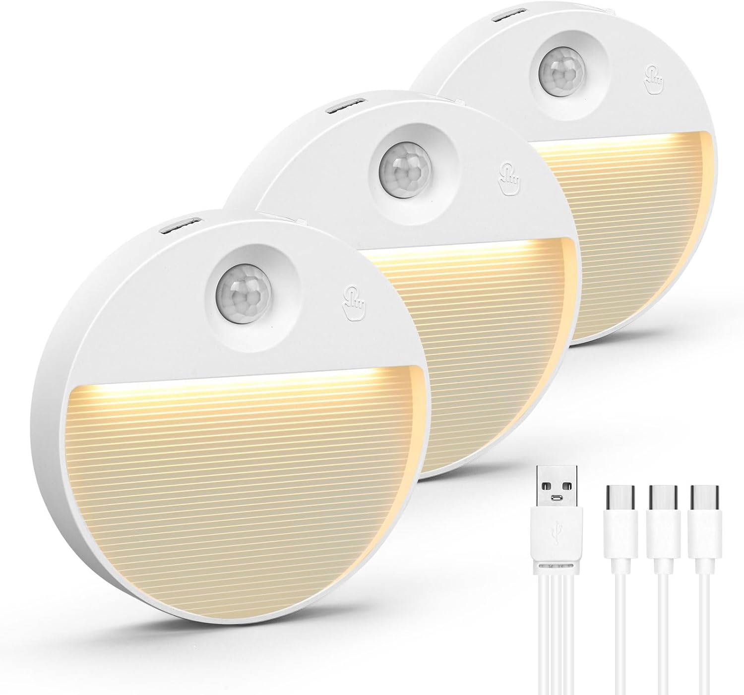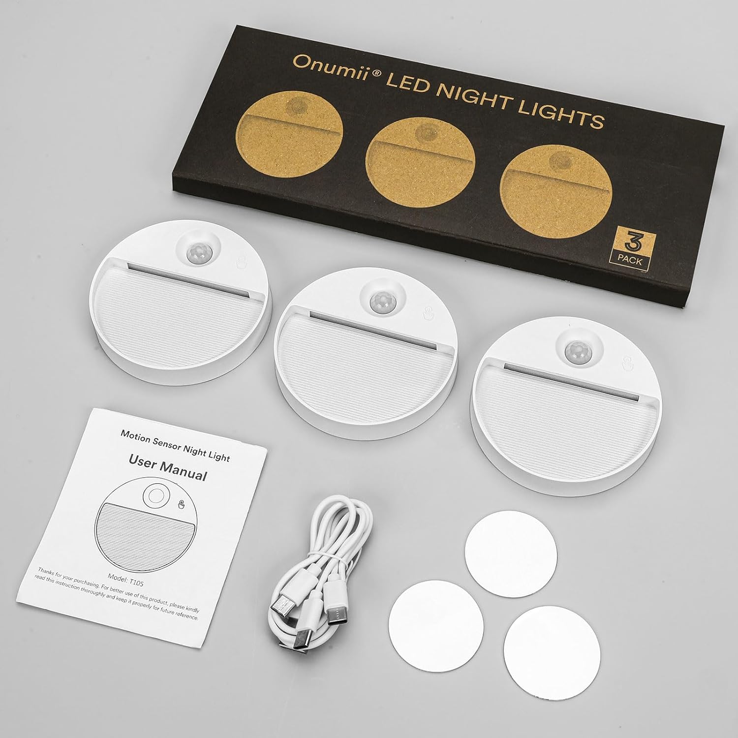 Onumii Motion Sensor Night Light LED Stair Light USB Rechargeable for Wardrobe, Cupboard, Bedroom, Hallway, Toilet – Auto On/Off, Wireless Stick-On Magnetic Light (3 Pack)