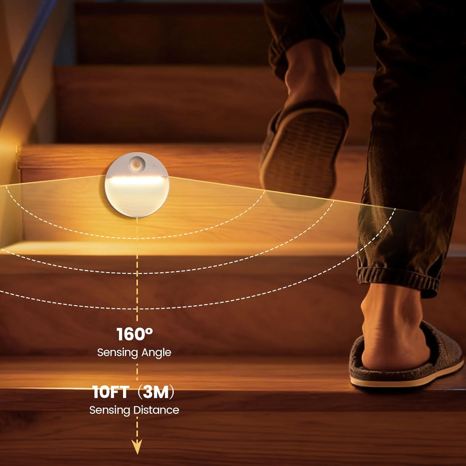 Eye-Care: The downward LED and striped panel design to prevent direct eye exposure, ensuring comfortable nighttime visibility without harsh glare, and softens brightness for a relaxed ambiance, making it ideal for midnight bathroom or kitchen visits.