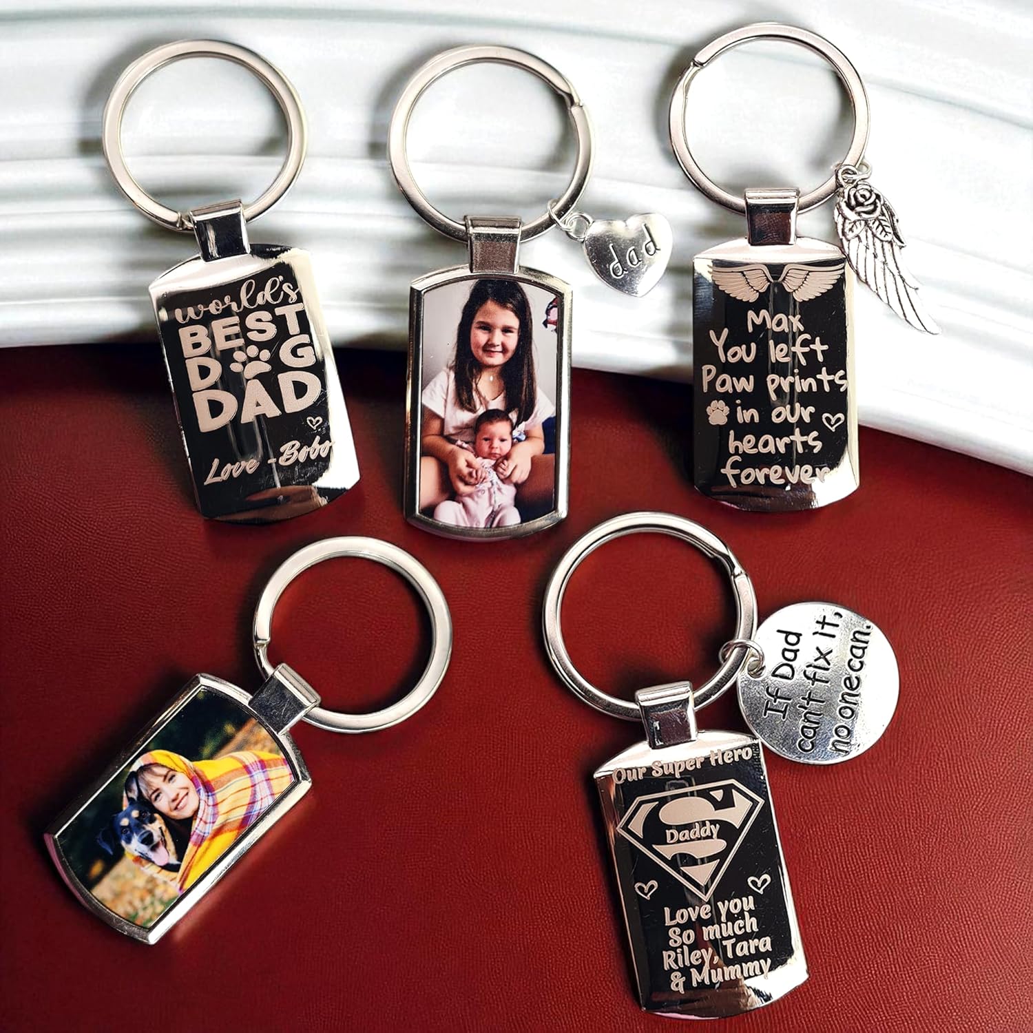 Personalised Photo Keyring, Custom Keychain, Engraved Keyring Gift for Him, Her, Mum, Dad, Grandparents, Birthdays, Mother’s Day, Father’s Day, Anniversaries, Valentines Day Gift, Valentines Keepsake