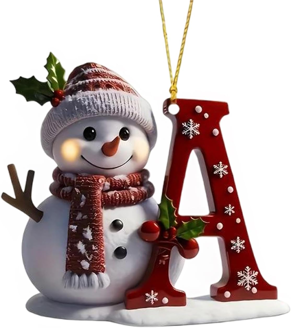 Personalized Acrylic Letter Snowman Christmas Ornaments – 26 Alphabet Tree Decorations, Prepare for Family Friends Teacher (1, A)