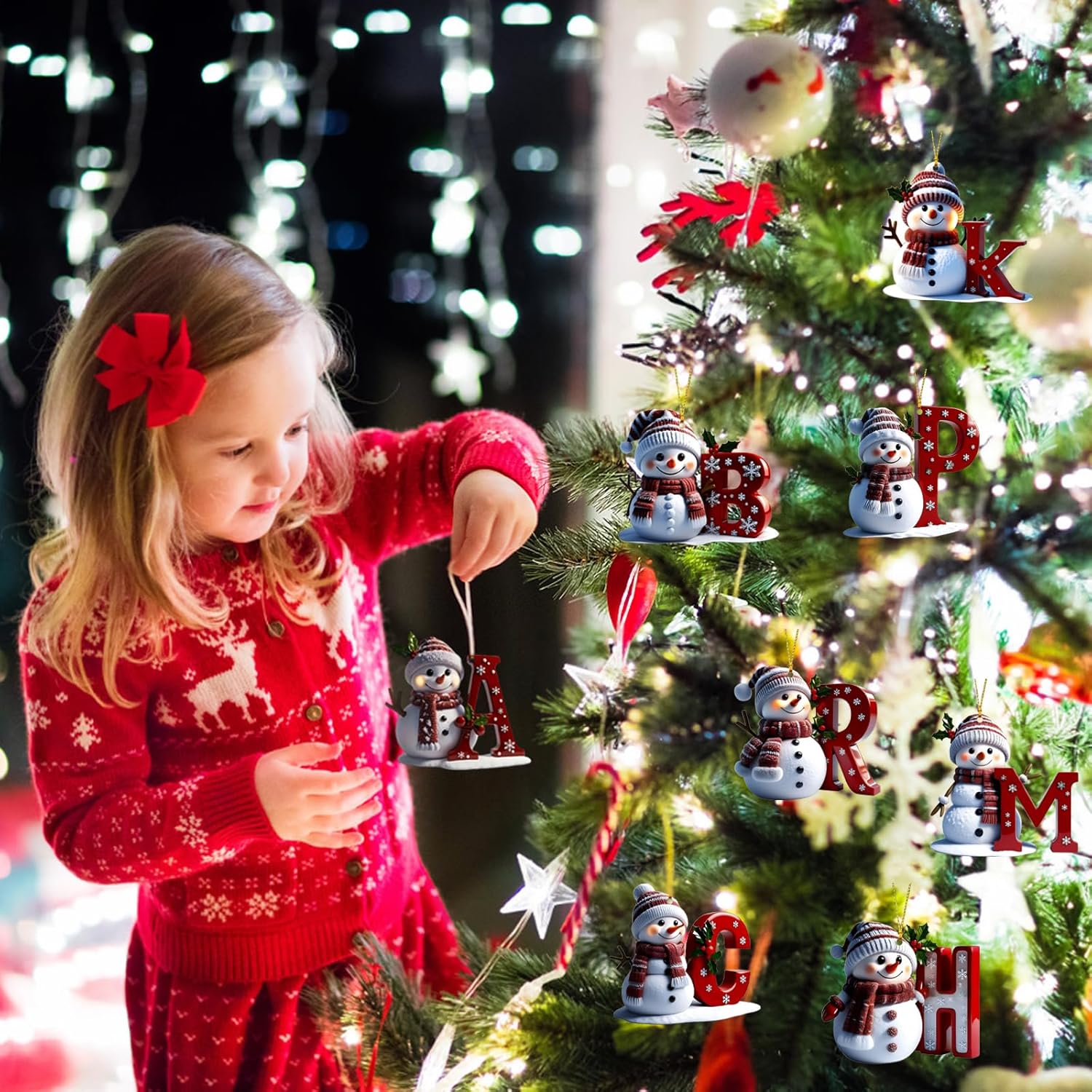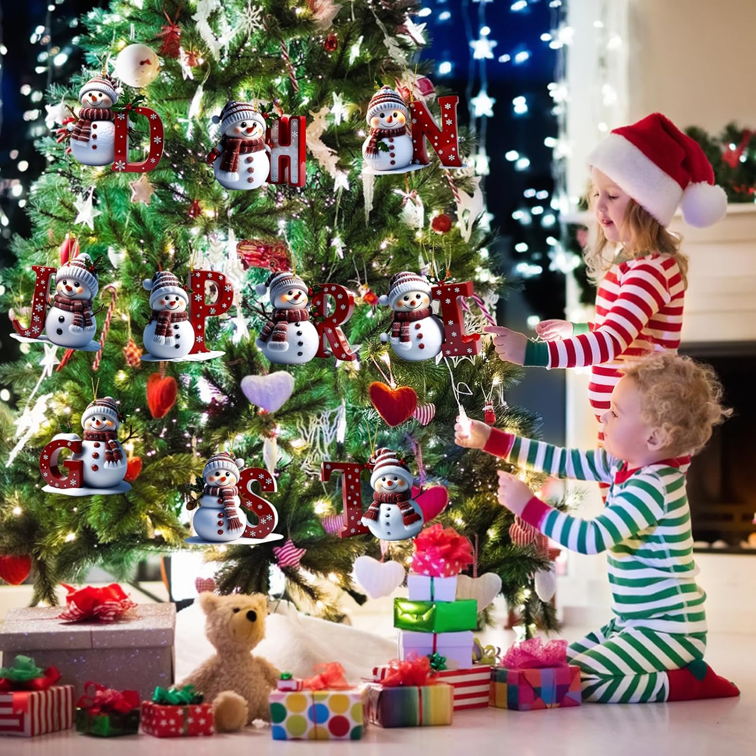 Unique Letter Decoration Design: Each of the 26 letters is accompanied by a cute snowman with red decorations and a Christmas hat, adding a festive atmosphere to your Christmas tree ornaments and making your holiday decorations more unique and expressive