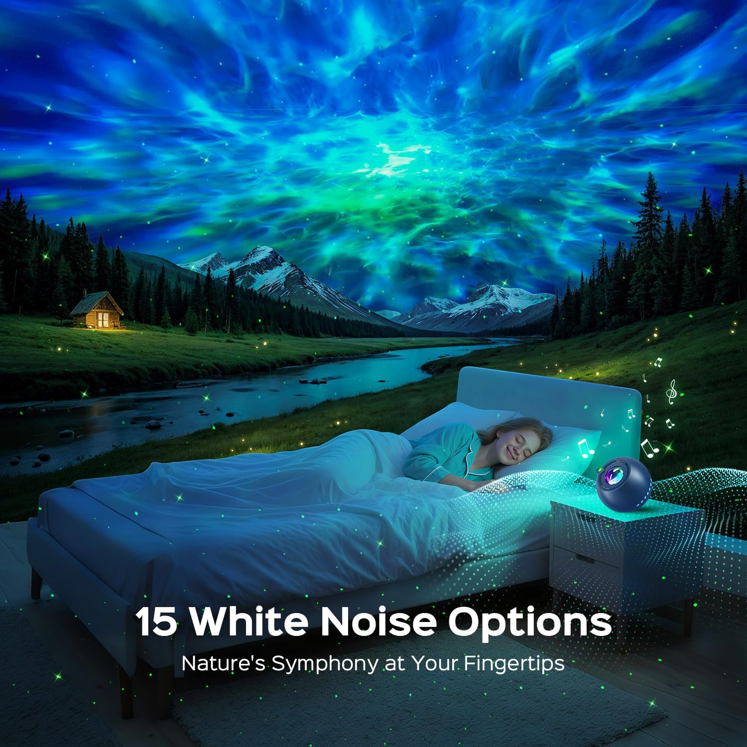 【GALAXY PROJECTOR 15 BUILT-IN WHITE NOISE】The 15 built-in musics of galaxy projector & ceiling projector includes lullabies, white noises and sound of nature(rain, sea wave, fan, bird singing…). Space projector & led projector for bedroom takes u to the sounds of nature that help u, yr baby, kids fall asleep easily. U can use baby projector light as a white noise machine. With the galaxy projector light for bedroom & nebula projector, u&yr kids can enjoy galaxy lights and great music at the some time, falling into sweet dream in the sensory lights for bedroom lights. Take the christmas gifts for kids gift & christmas gifts, room decor aesthetic bedroom home, make U&kids’ sleep easier!