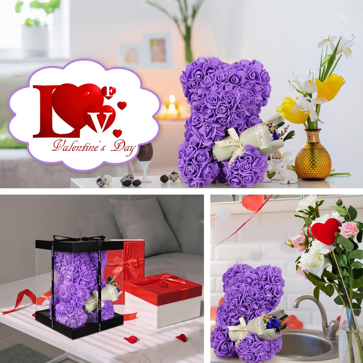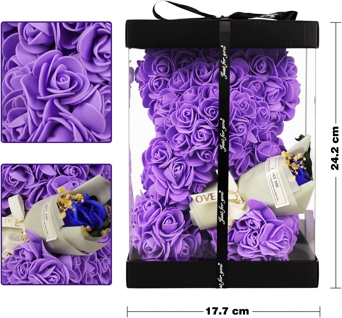 These romantic rose bears are suitable for girls and women of all ages. Give this cute rose bear on Christmas, Valentine’s Day, Mother’s Day or wedding anniversary.