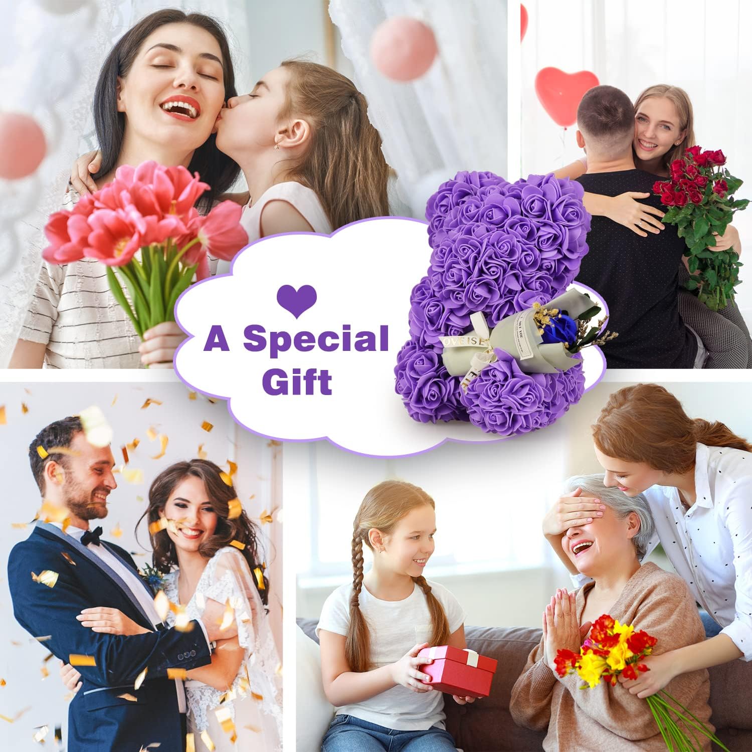 BEST GIFT】- Rose Flower Bear is a perfect gift for your wife, daughter, lover, friend or family member, a unique and precious gift for birthdays, anniversaries, Valentine’s Day, weddings, graduations or any other occasions.