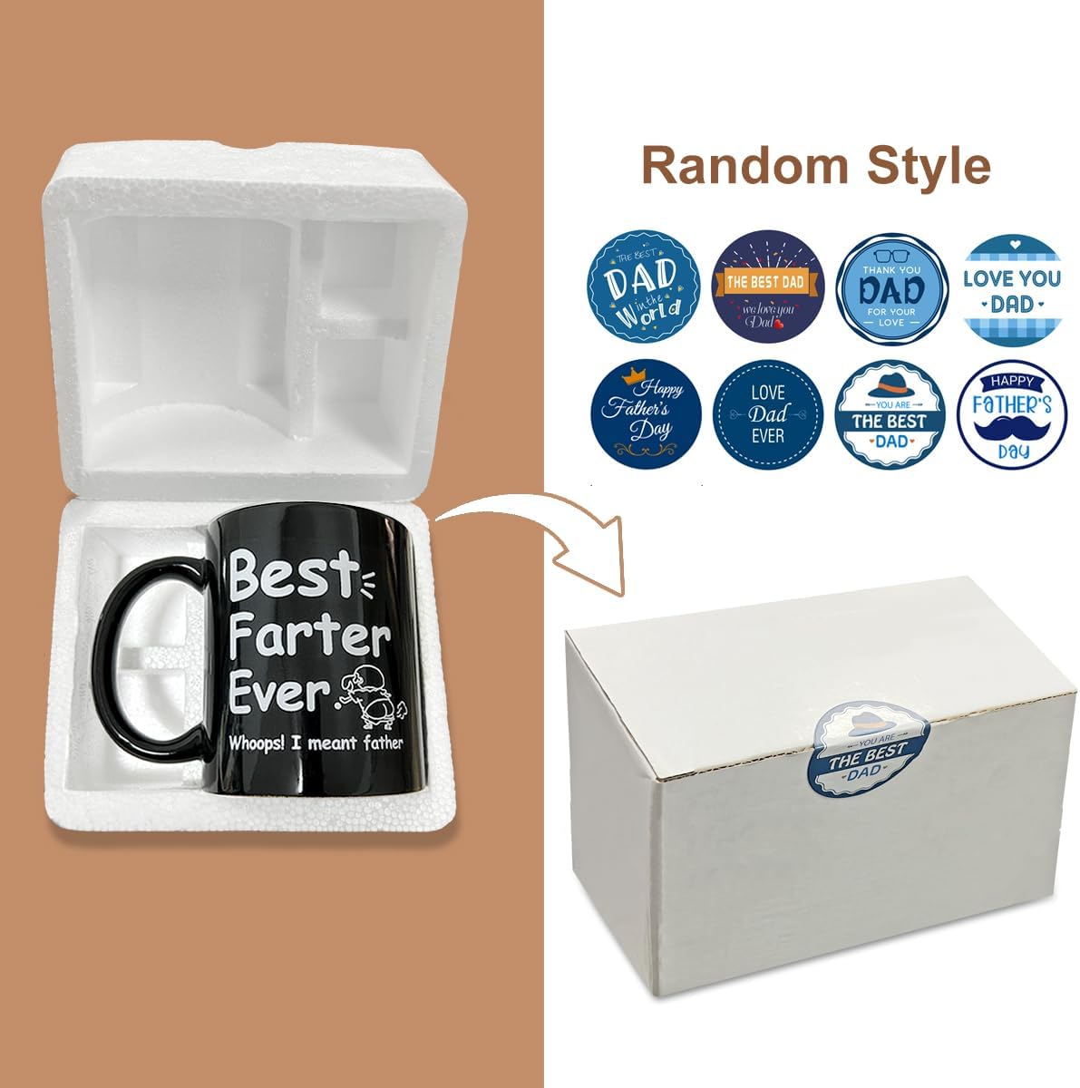 Shatter Resistant Package: Double layer foam packaging can effectively prevent the mug from being damaged. Featuring cute Father’s Day slogans sealing sticker on the surface, let you demonstrate your careful preparation on Father’s Day or Dad’s birthday.