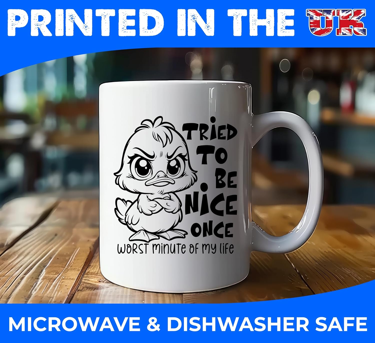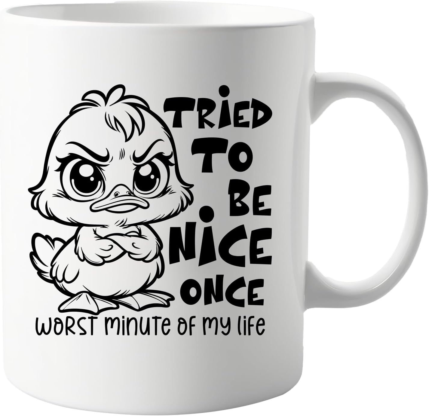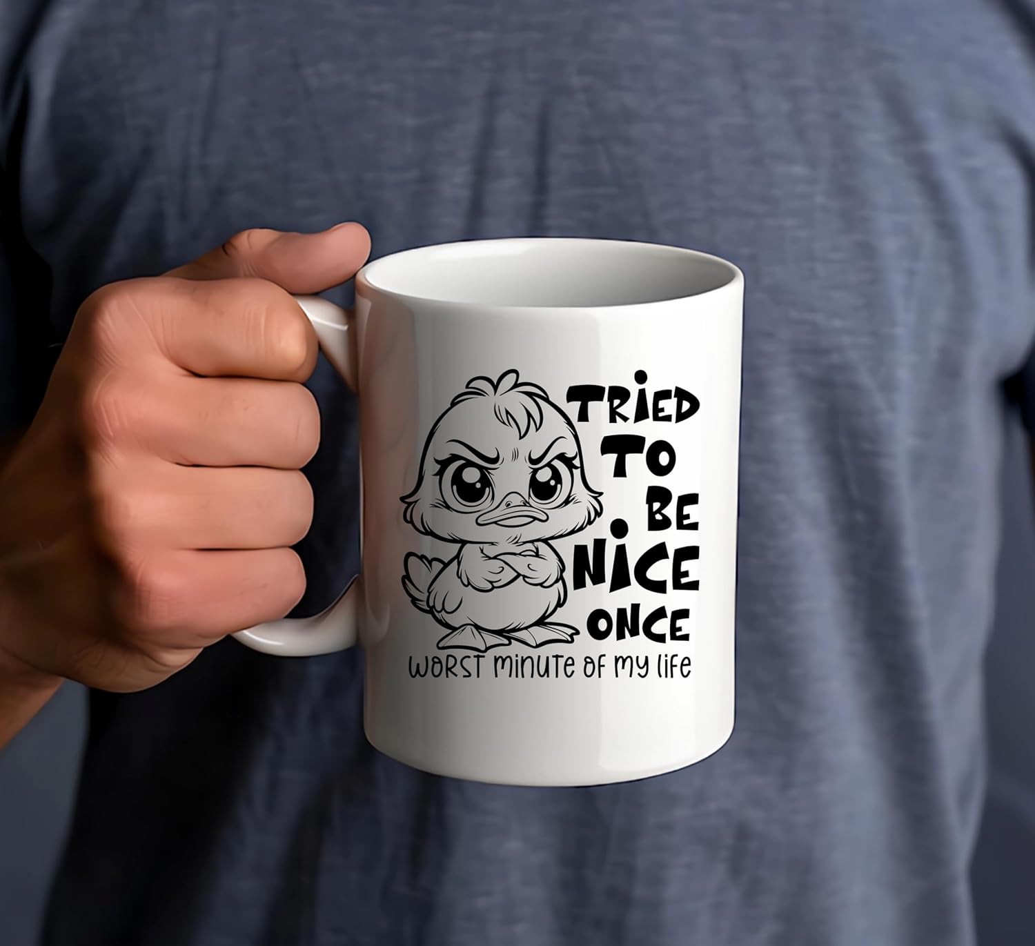 signkitsuk I Tried to Be Nice Once, Worst Minute of My Life 11oz Ceramic Mug – Humorous Coffee Mug, Gag Gift for Coffee Lovers, Quirky Present for Friends, Family, or Co-Workers