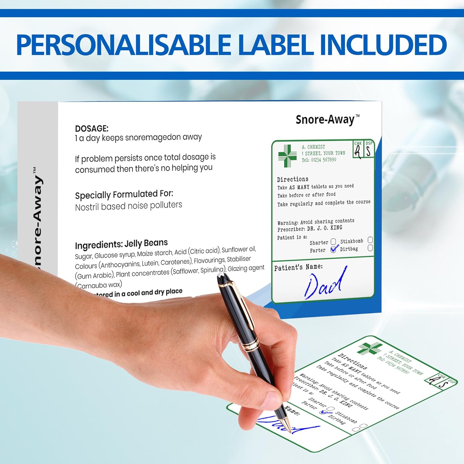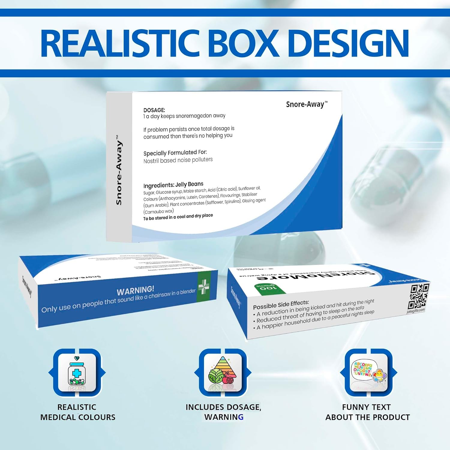 REALISTIC JOKE MEDICATION BOX – Designed to look like genuine medication, SnoreNoMore comes complete with detailed packaging that mimics a prescription, making the reveal even funnier. A brilliant novelty gift for dads, partners, and friends, it’s a guaranteed laugh for anyone with a sense of humour. Perfect for funny birthday gifts or gag gifts for men.