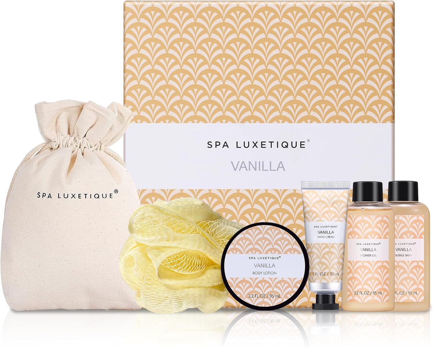 Spa Luxetique Spa Gift Set, 6pcs Vanilla Bath Gifts for Women, Travel Gift Box with Hand Cream, Body Lotion, Shower Gel, Bubble Bath, Mothers Day Gift, Valentine’s Gifts for Her Christmas Gifts
