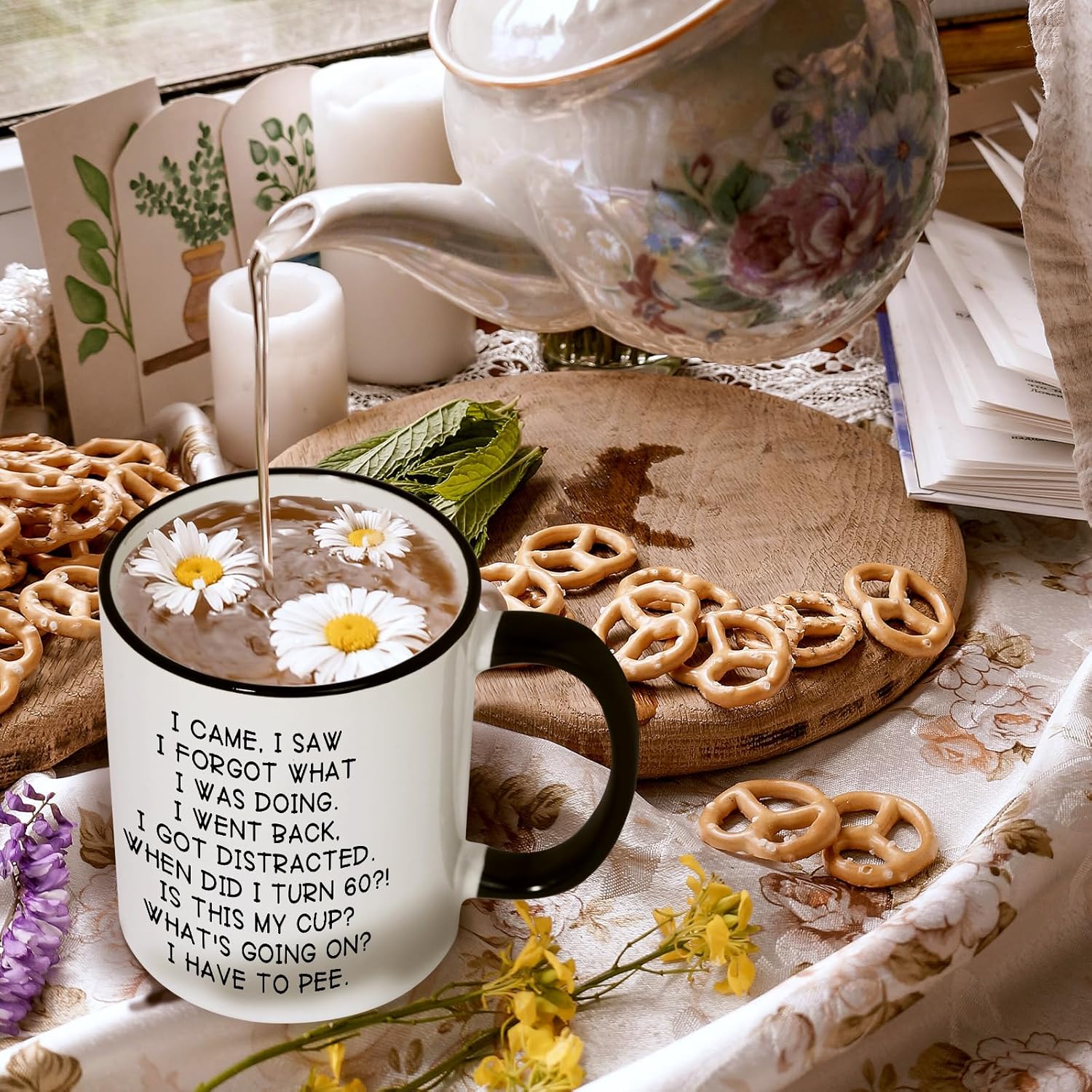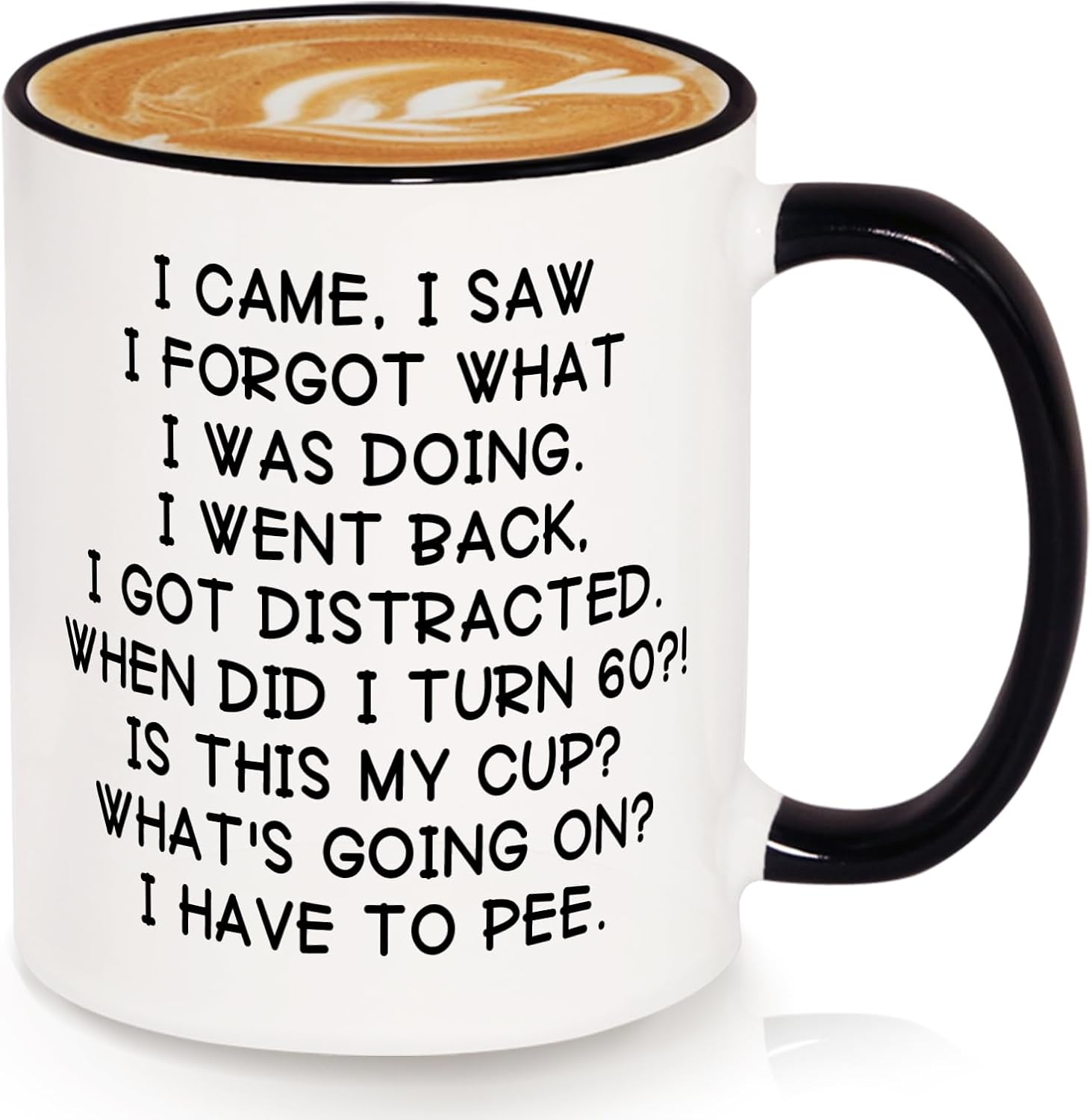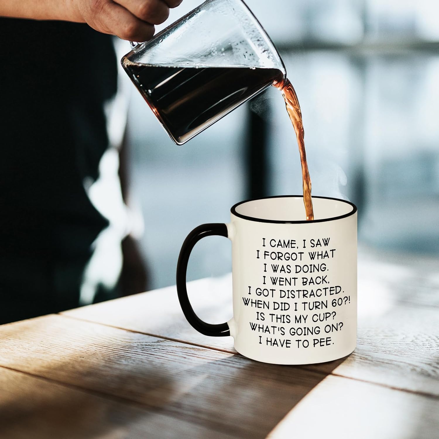 【Relatable & Hilarious Design】Printed with the quote: “When did I turn 60?! Is this my cup? What’s going on?” this 11oz ceramic mug captures the charm and chaos of hitting a big birthday. A top choice for those looking for a funny mug with character