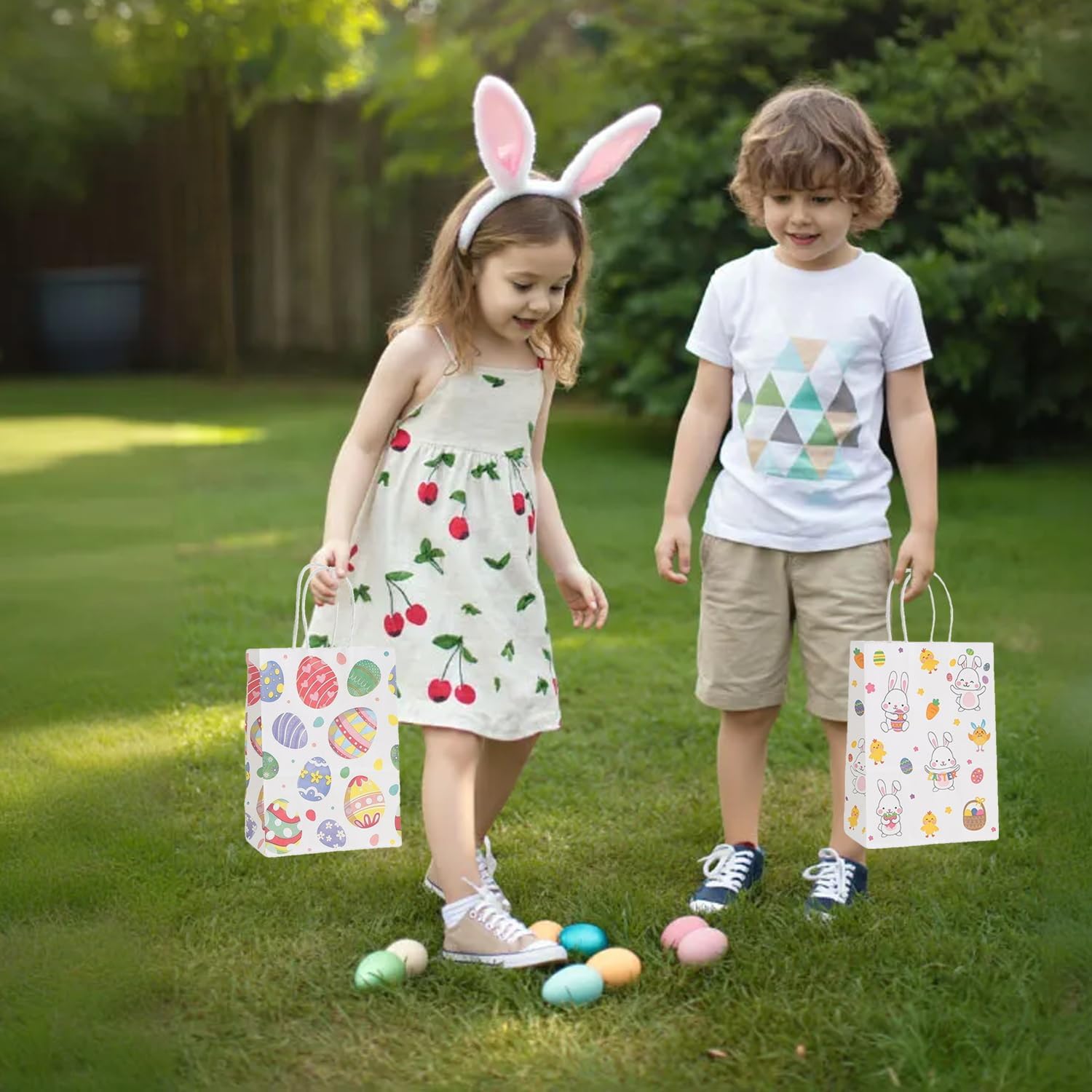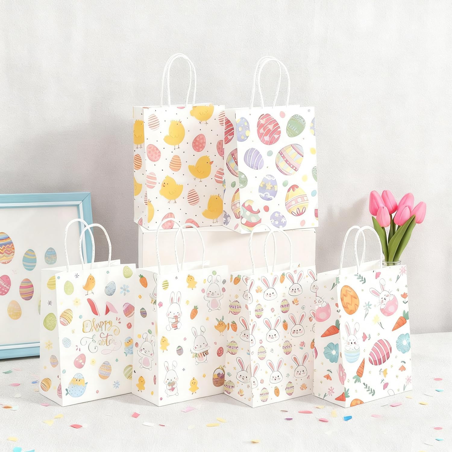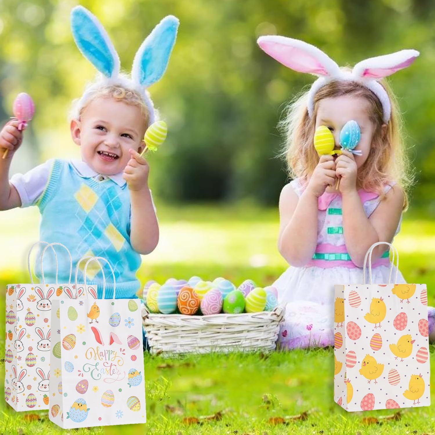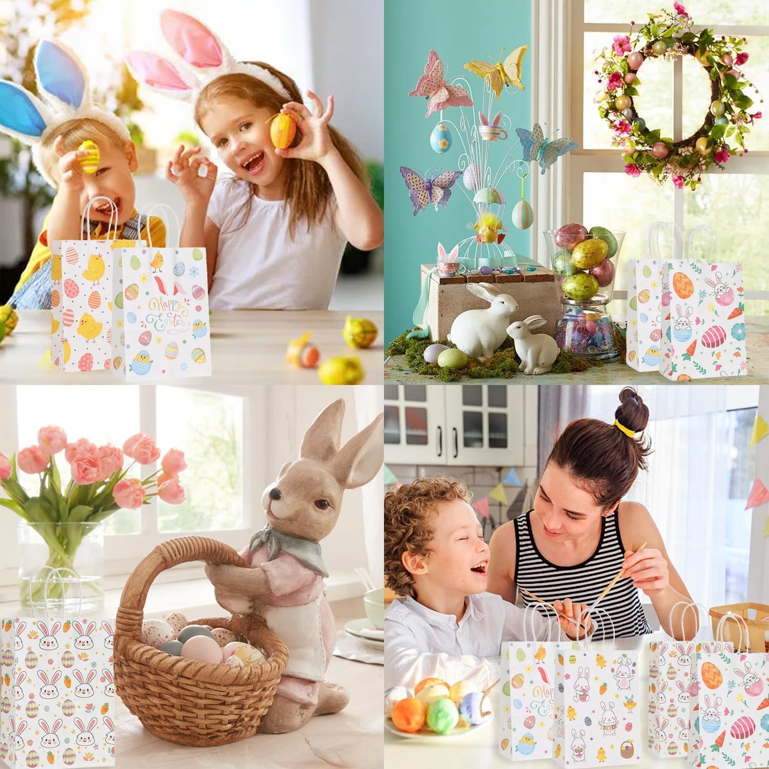 Multiple uses paper bags: Easter paper bags are perfect as gift bags,egg hunt bags, grab bags, candy bags, party favor bags.ideal for school egg hunts, party favors or easter gift-giving.