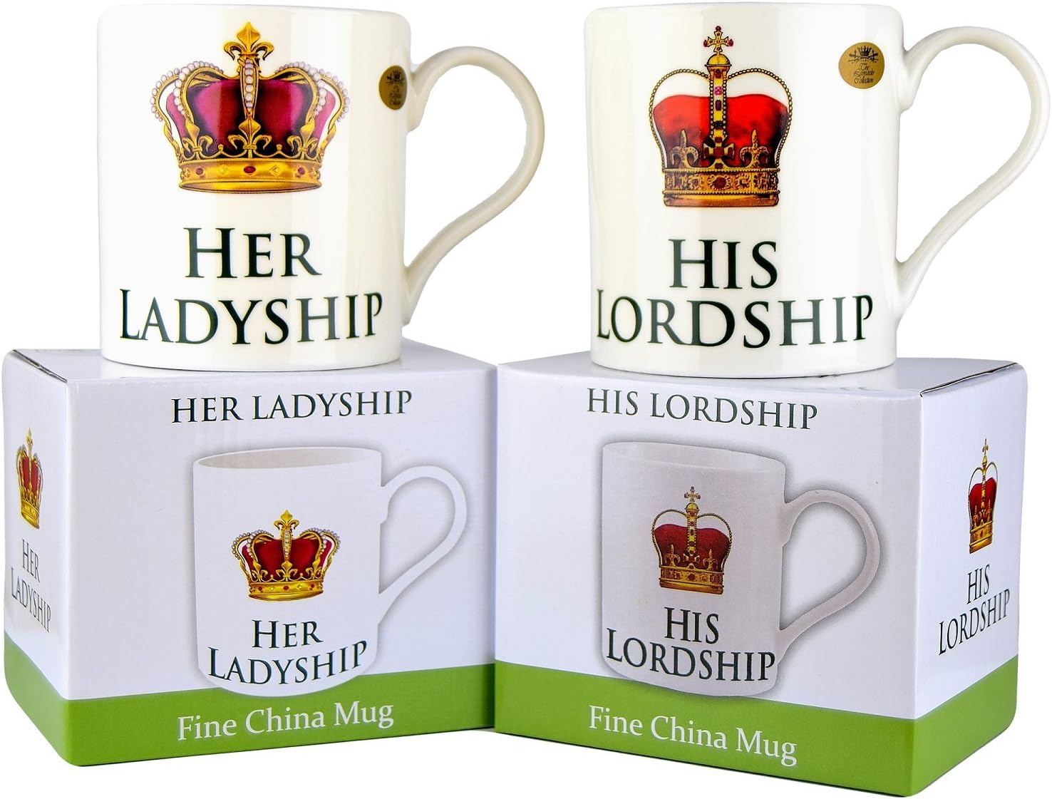 The Leonardo Collection His Lordship & Her Ladyship Fine China Set of 2 Mugs in Individual Gift Boxes