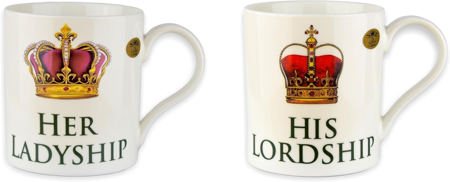 Celebrate your regal romance with this exquisite His Lordship and Her Ladyship Mug Set. Crafted from fine china, each mug boasts a noble crown motif, perfect for the king and queen of the household. Ideal for anniversaries, weddings, or as a charming touch to your daily coffee ritual, this set makes a stately statement