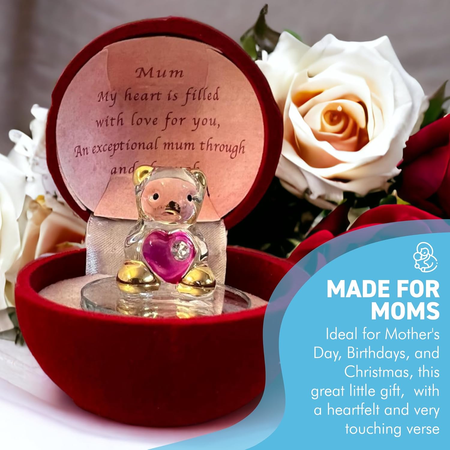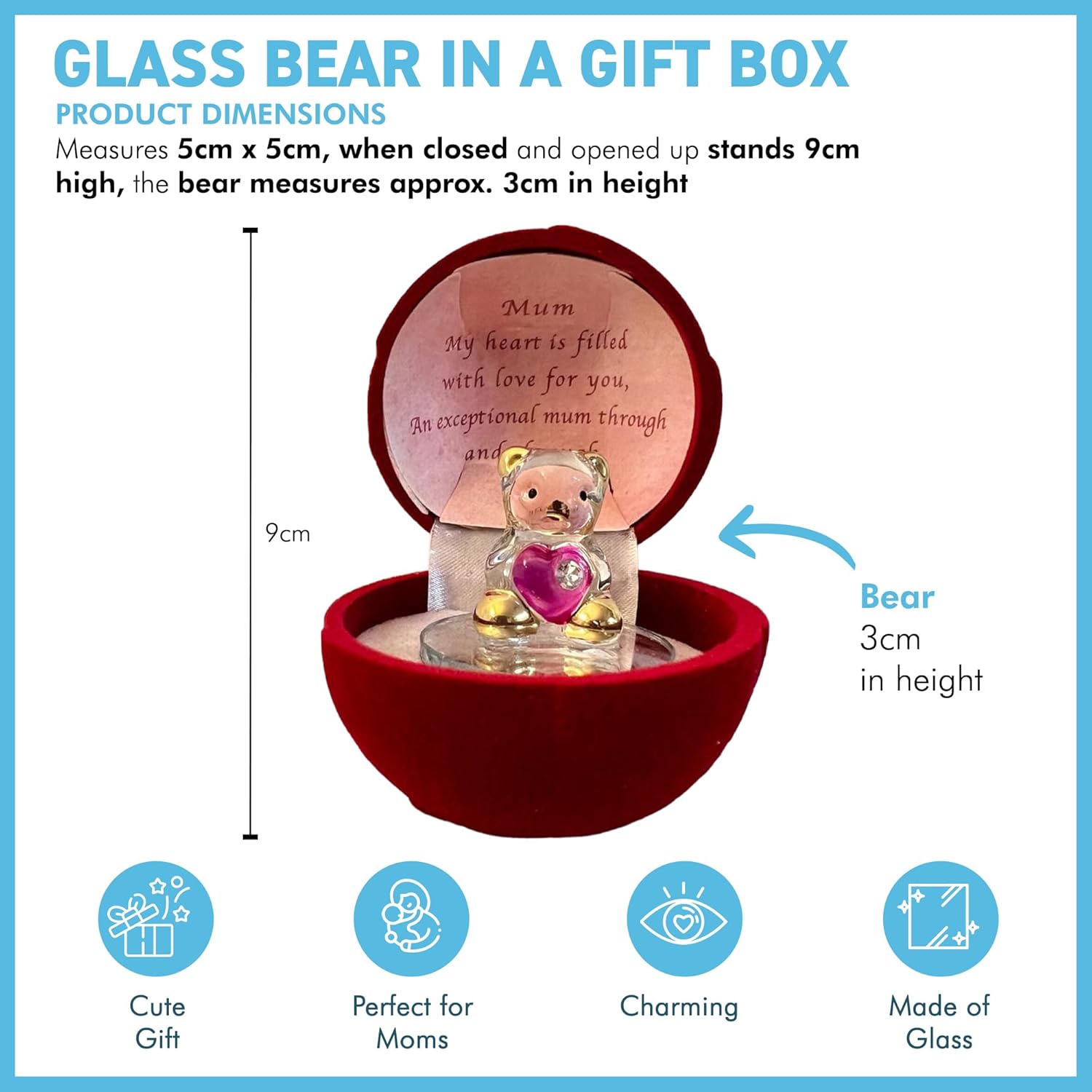 Thorness Glass Bear in Gift Box for a Special Mum Through and Through | Gift for Mother | Mummy | Mother’s Day | Gift for Mum from Daughter or Son