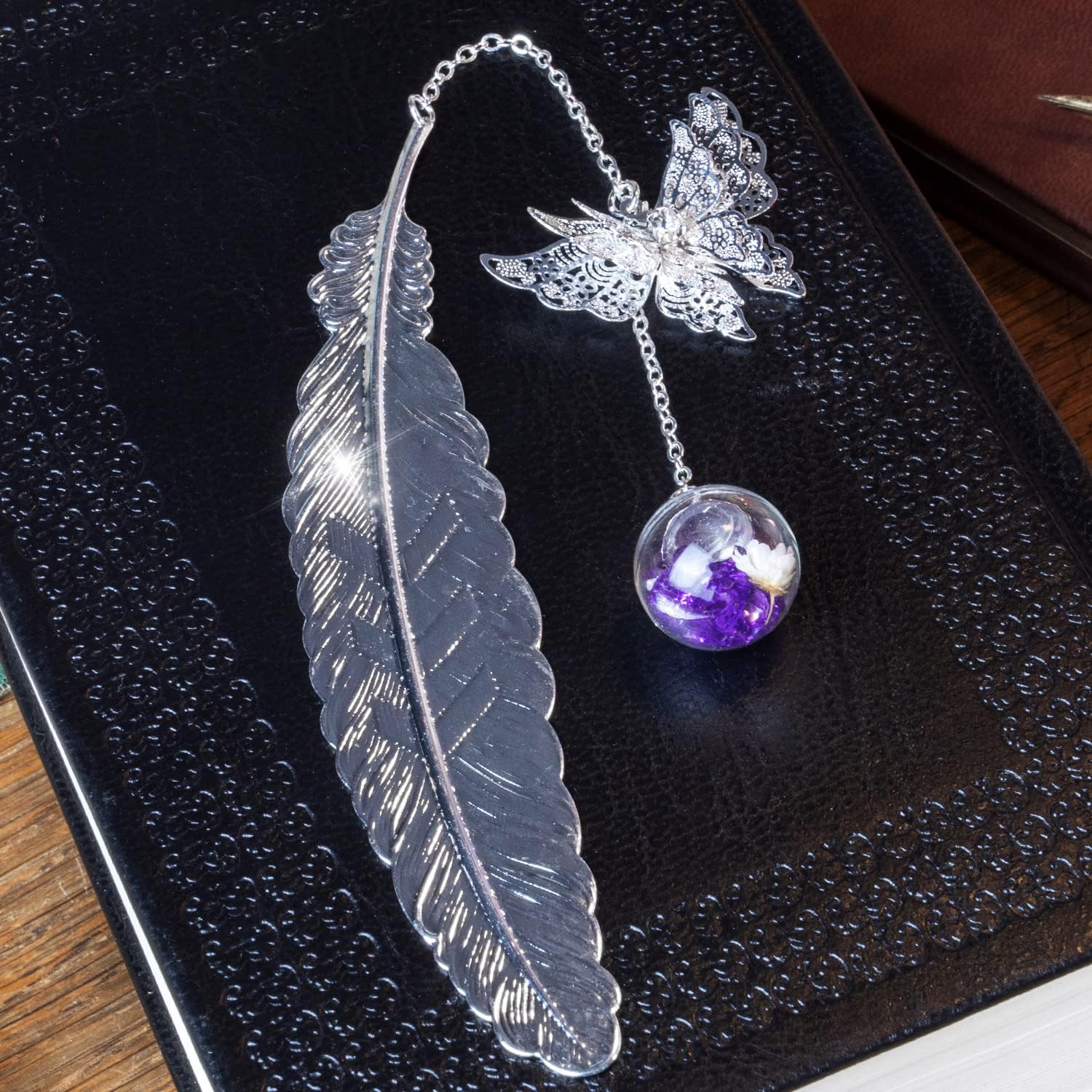 Designed with women readers in mind, this silver feather bookmark is lightweight, gentle on books and comfortable to use. The delicate butterfly charm and hanging glass bead add a soft, elegant touch—making every reading moment feel calm, personal and beautifully yours, at home or on the go.
