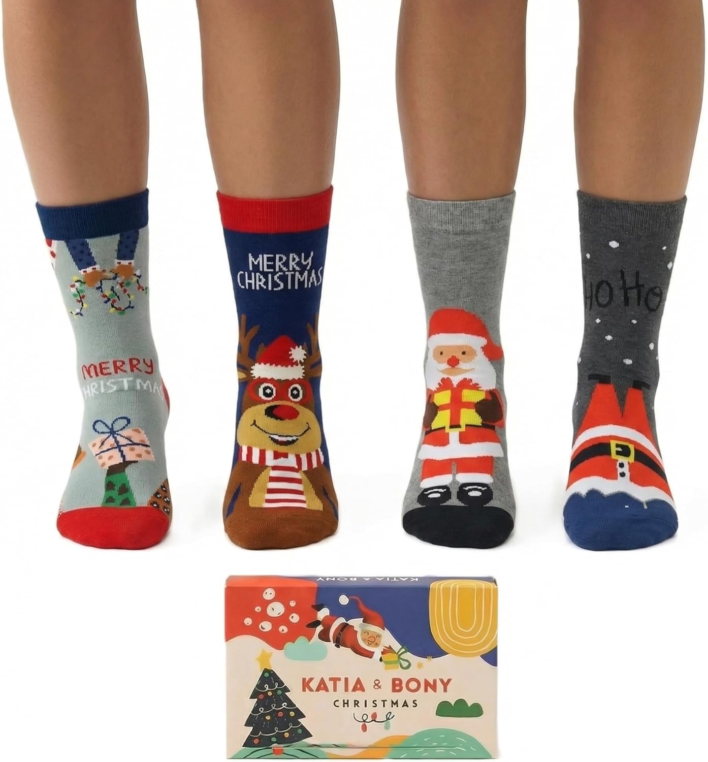 Spread the festive cheer with this delightful Christmas-themed sock collection .This charming gift box contains 4 pairs of patterned ankle socks featuring adorable holiday designs including Santa Claus, reindeer, and festive decorations. Perfect for both men and women, these comfy ankle socks are crafted from a premium combed cotton blend that ensures comfort throughout the day. The socks come in UK sizes 5,5-8, making them an ideal unisex option. Each sock showcases vibrant holiday colours and playful Christmas motifs, bringing a touch of seasonal joy to your everyday wear. The set arrives in an attractive gift box, making it a perfect present for loved ones during the festive season. The comfortable elastic bands ensure the socks stay in place without being too tight, while the quality cotton blend material provides breathability and durability. These cheerful socks are perfect for adding a dash of holiday spirit to your winter wardrobe.