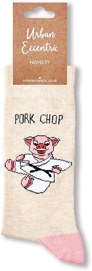 Urban Eccentric “Pork Chop” Funny Novelty Socks – Karate Pig Design – Quirky Gift for Men or Women – UK Size 6-11 – Cute & Comfy