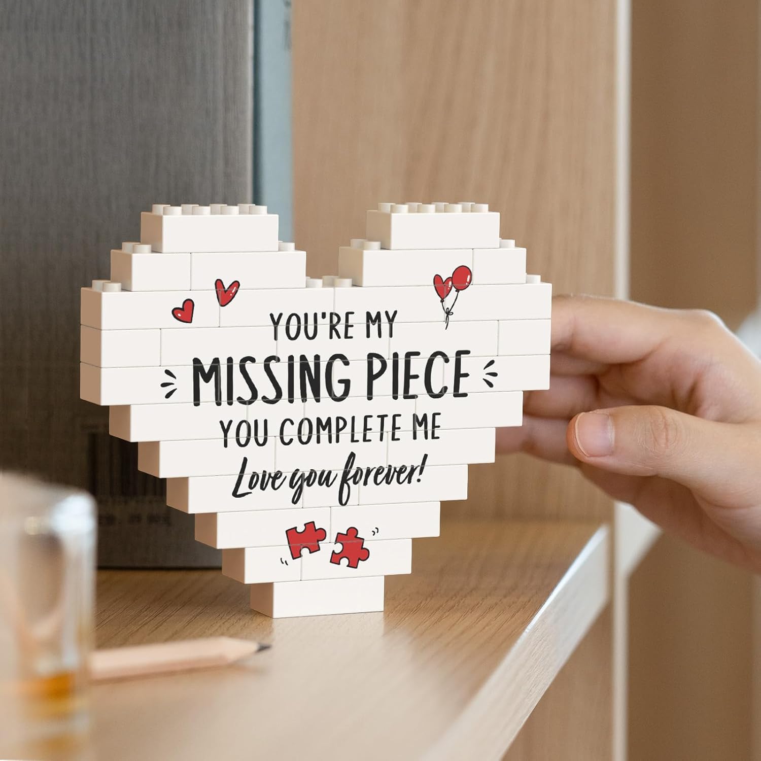 Valentine Day I Love You Gifts for Her, Him, Girlfriend, Boyfriend, Building Blocks Puzzle Plaque, Anniversary Birthday Valentine Present for Wife, Husband, Fiance, Romantic I Love You Plaque