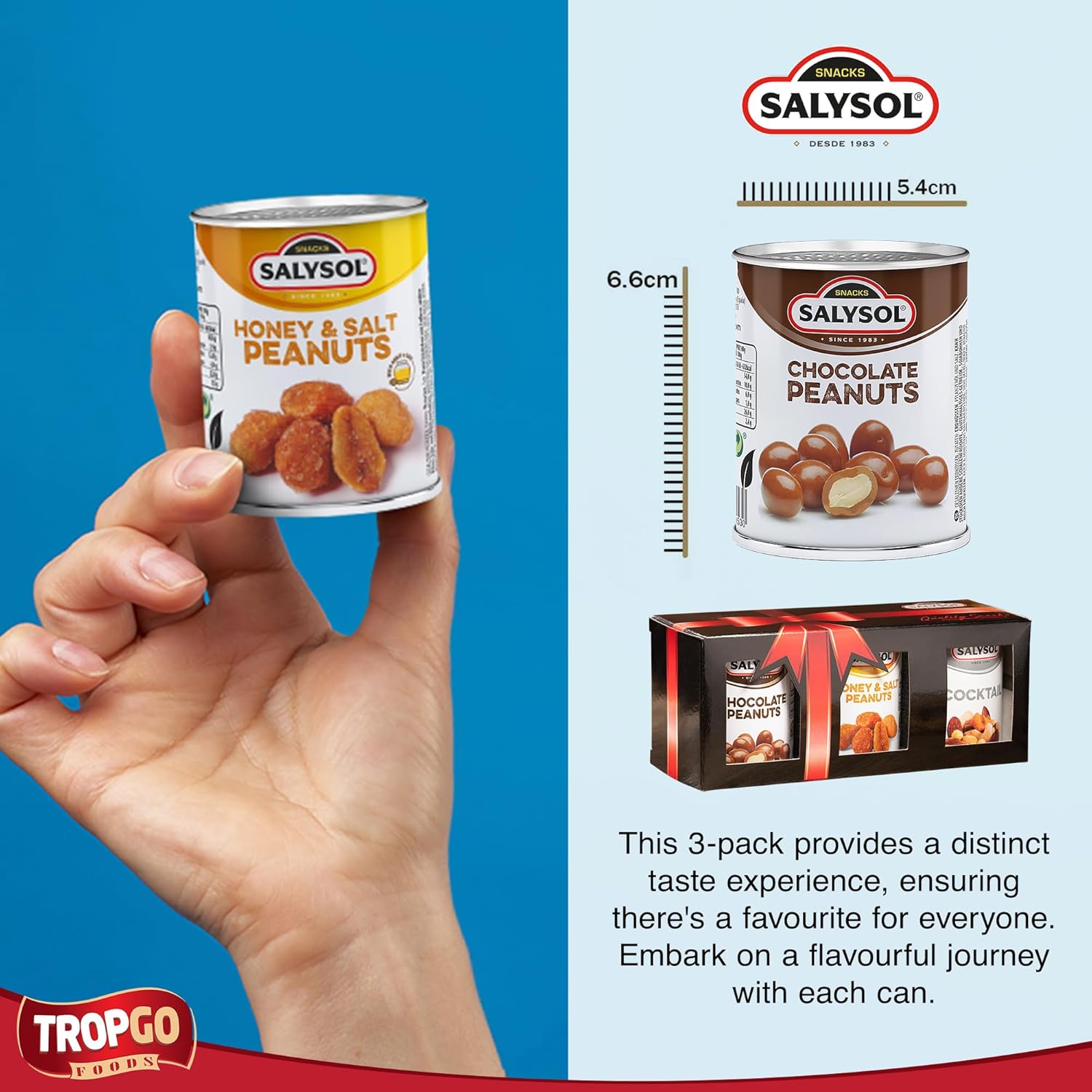 SALYSOL Snacks Festive Collection Luxury Gift Box is not just a snack; it’s an orchestration of nature in a can. Handpicked for their premium quality and taste, this blend becomes not only a gastronomic pleasure but also a health-boosting treat. Safely nestled in a durable metal container with a resealable cover, every bite promises to be as fresh as nature intended.