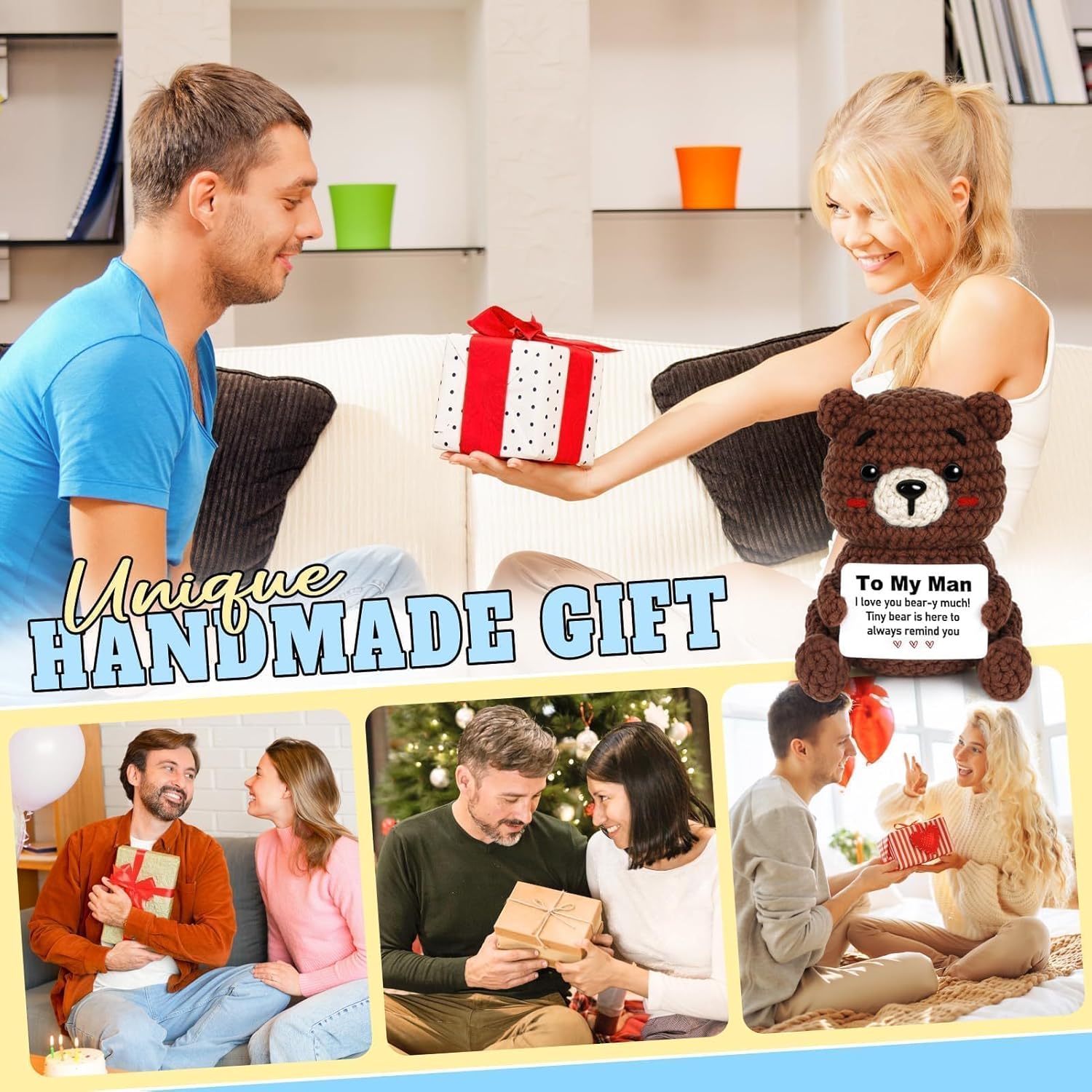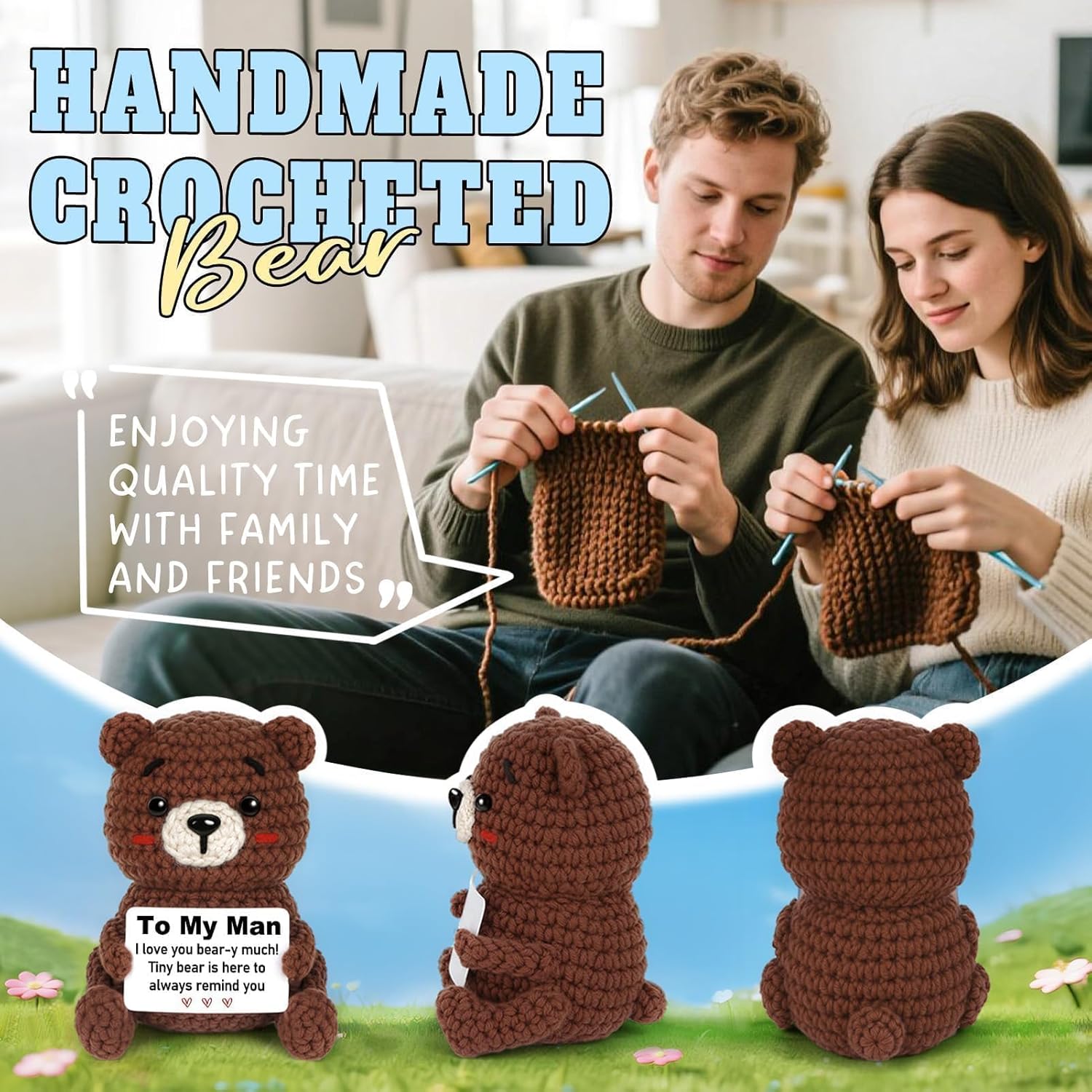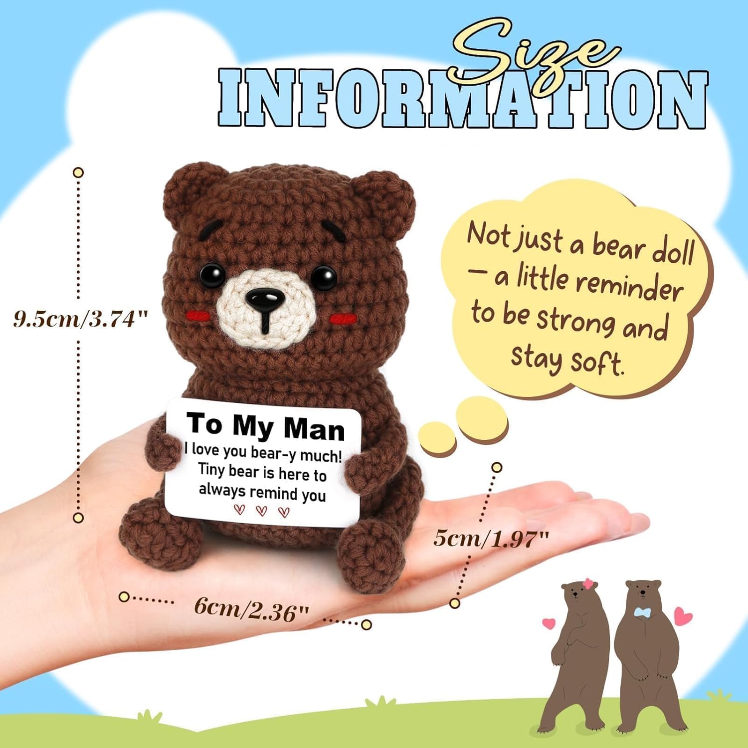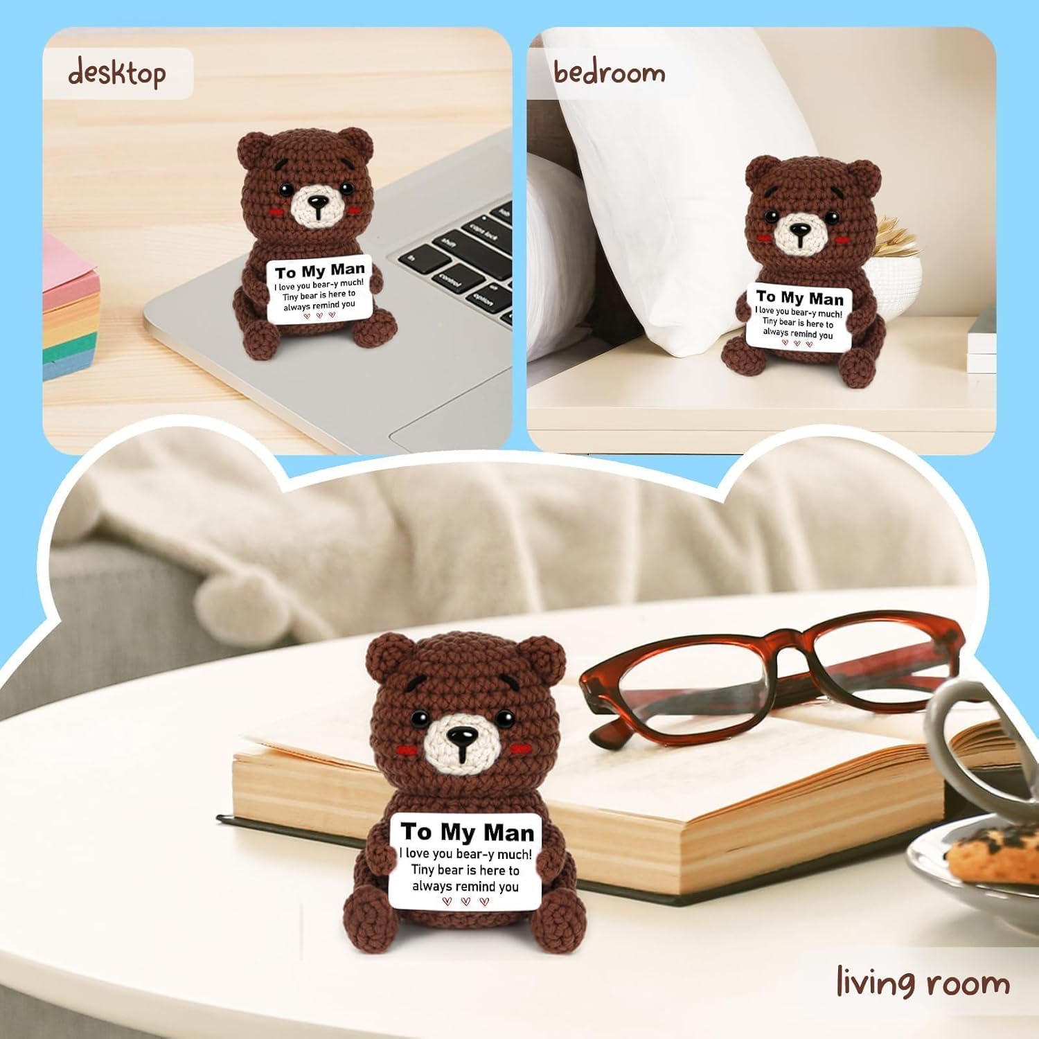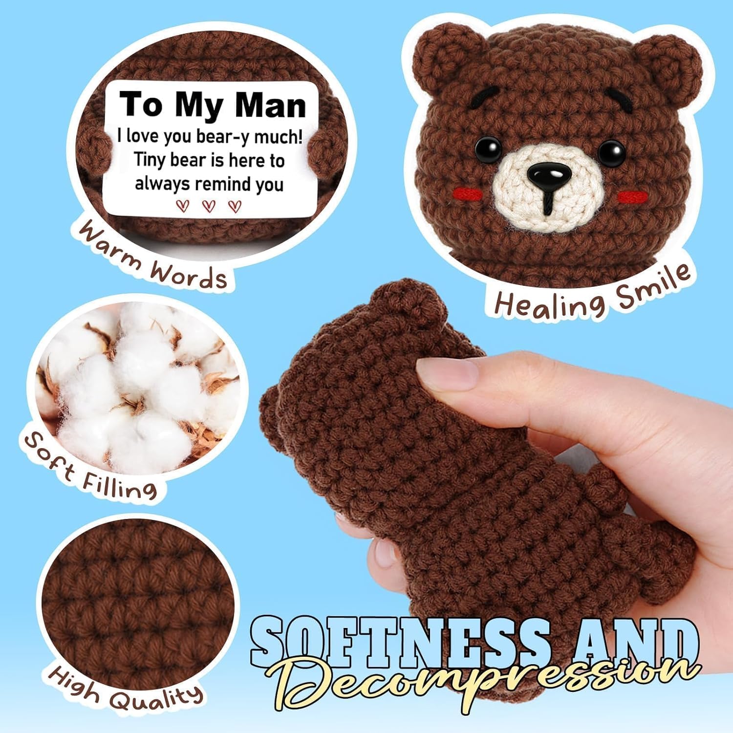 【To My Man Gift for Any Occasion】 When you want to express your love to that special man in a warm and unique way, this handcrafted crocheted bear is the perfect gift choice. Small and lightweight, it offers heartfelt companionship without feeling overwhelming. Whether it’s a birthday, anniversary, Valentines Day, Christmas gifts for him, or just any day, it gently carries your love into his heart and hands.