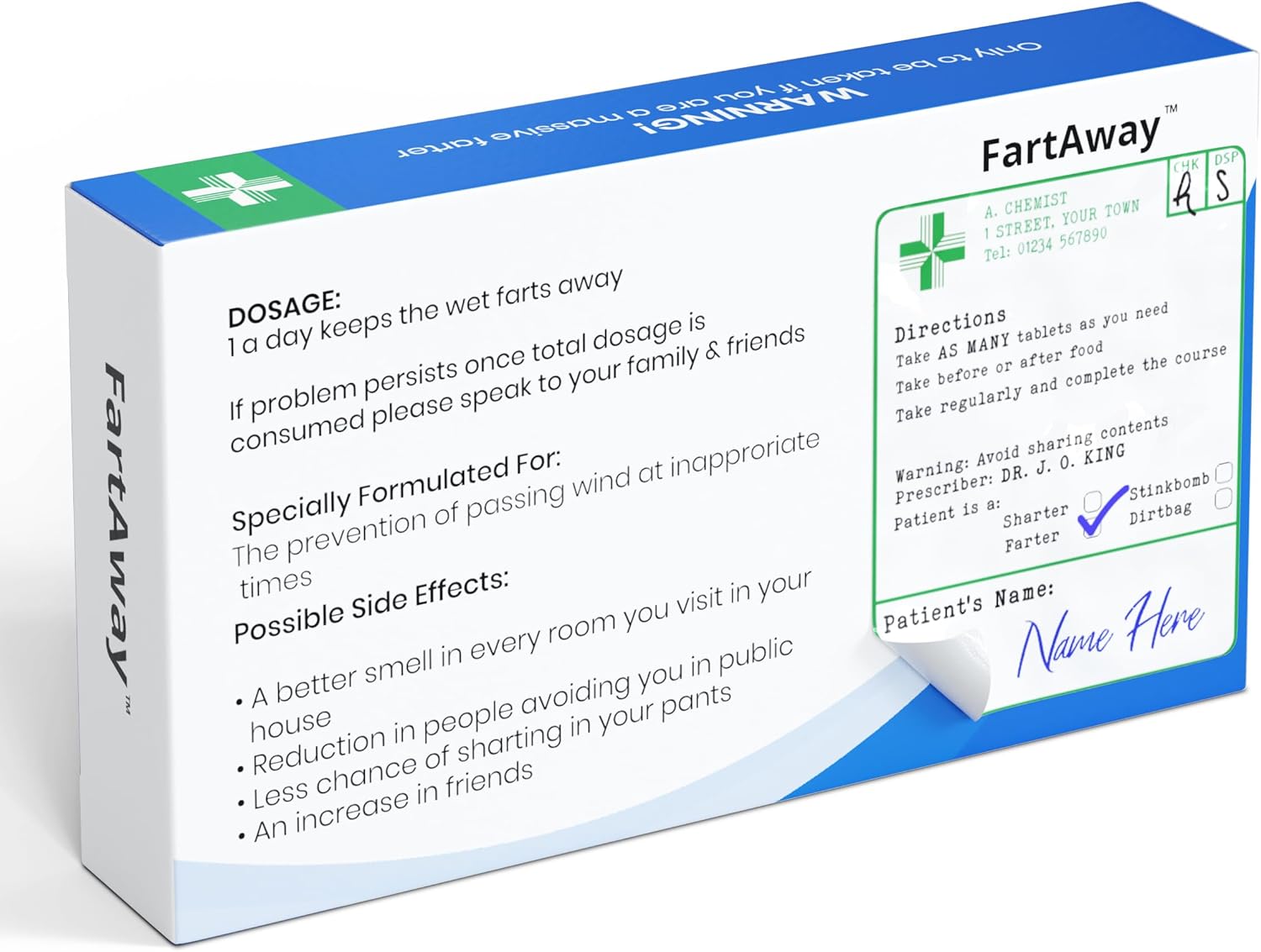 The description of how to take the “tablets” is where the real fun begins. It’s full of hilarious warnings and side effects that will leave your recipients in stitches. Have a look at the images of these tablet boxes to see what each of them says and then decide which is the best one for your friend or family member. The instructions and side effects are designed to get a laugh out of even the most stoic person.