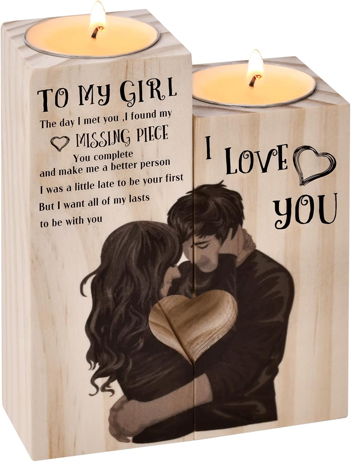 Valentines Gifts for Her:Candle holders with printed text and patterns,the bold text “TO MY GIRL,ILOVE YOU”Can express love well to your lover/her/women/girlfriend/wife/sweetie/partner/honey/darling/soulmate.