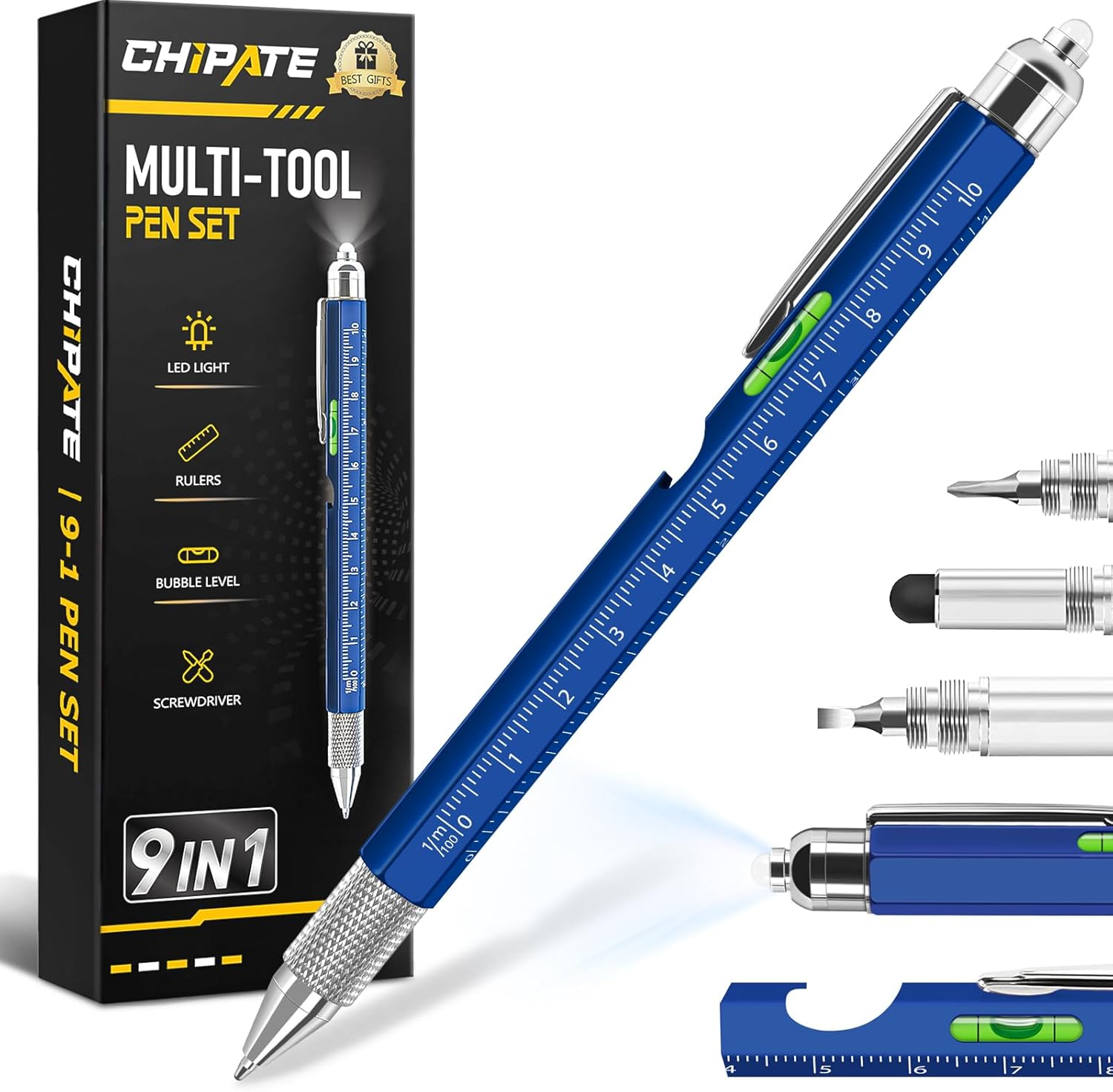 🎁[ Perfect Gift for Men ] Chipate 9 in 1 Multi Tool Pen is the perfect gift for men, very suitable for Stocking Fillers for Men, Christmas Gifts for Him, Birthday Gifts for Him, Fathers Day Gifts, Valentines Gifts for Him, Secret Santa Gift for Mens.