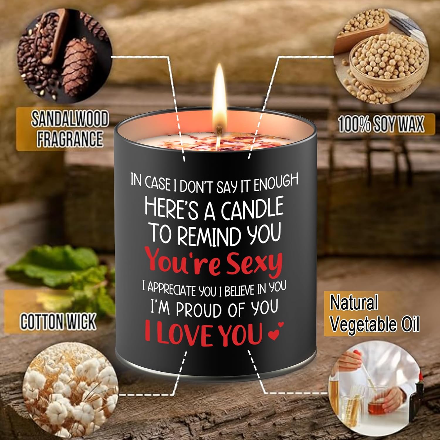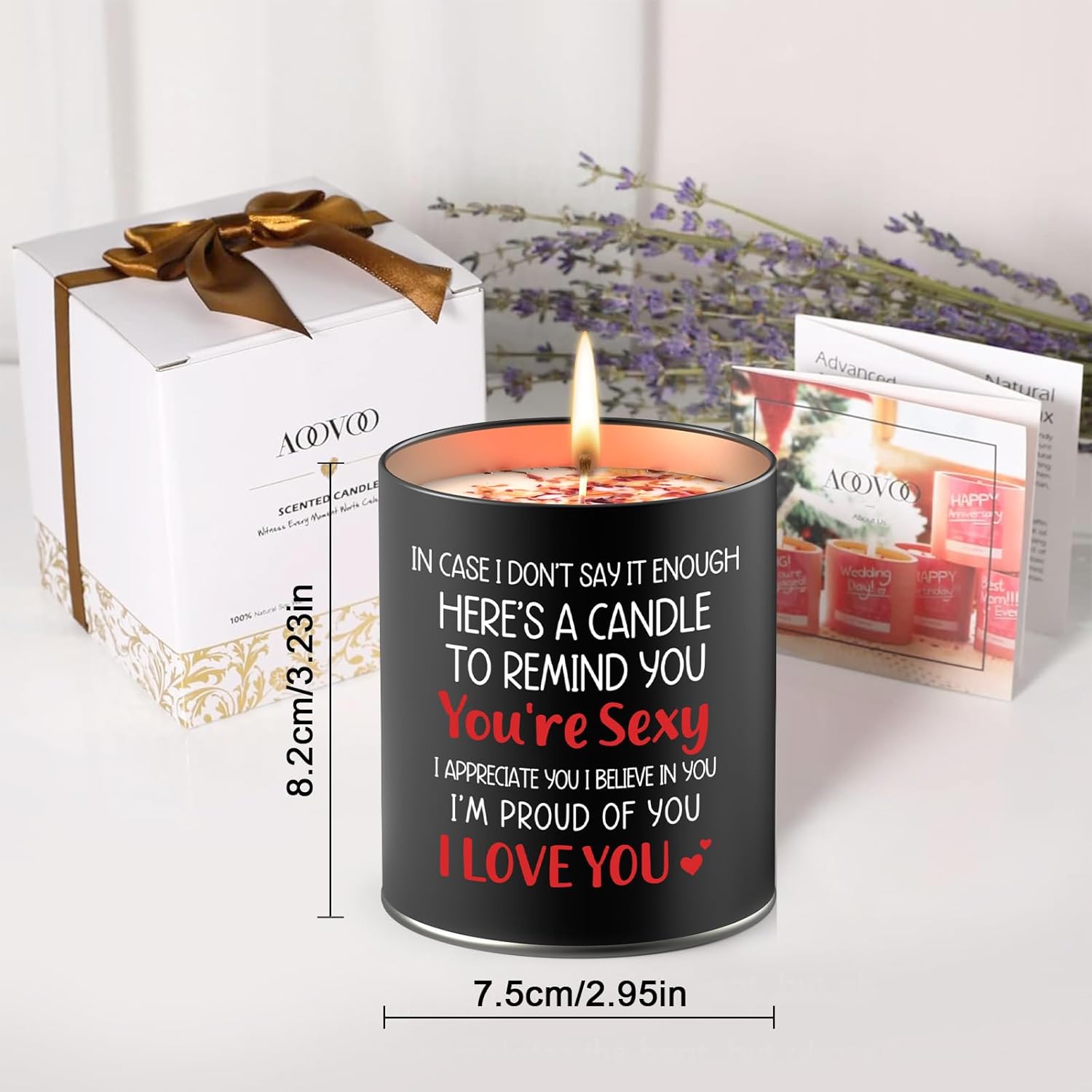 The candle is made of soy wax, with relatively safe ingredients, a burning time of over 50 hours, and no black smoke. This is the best gift for boyfriends, husbands,wife,girlfriend.