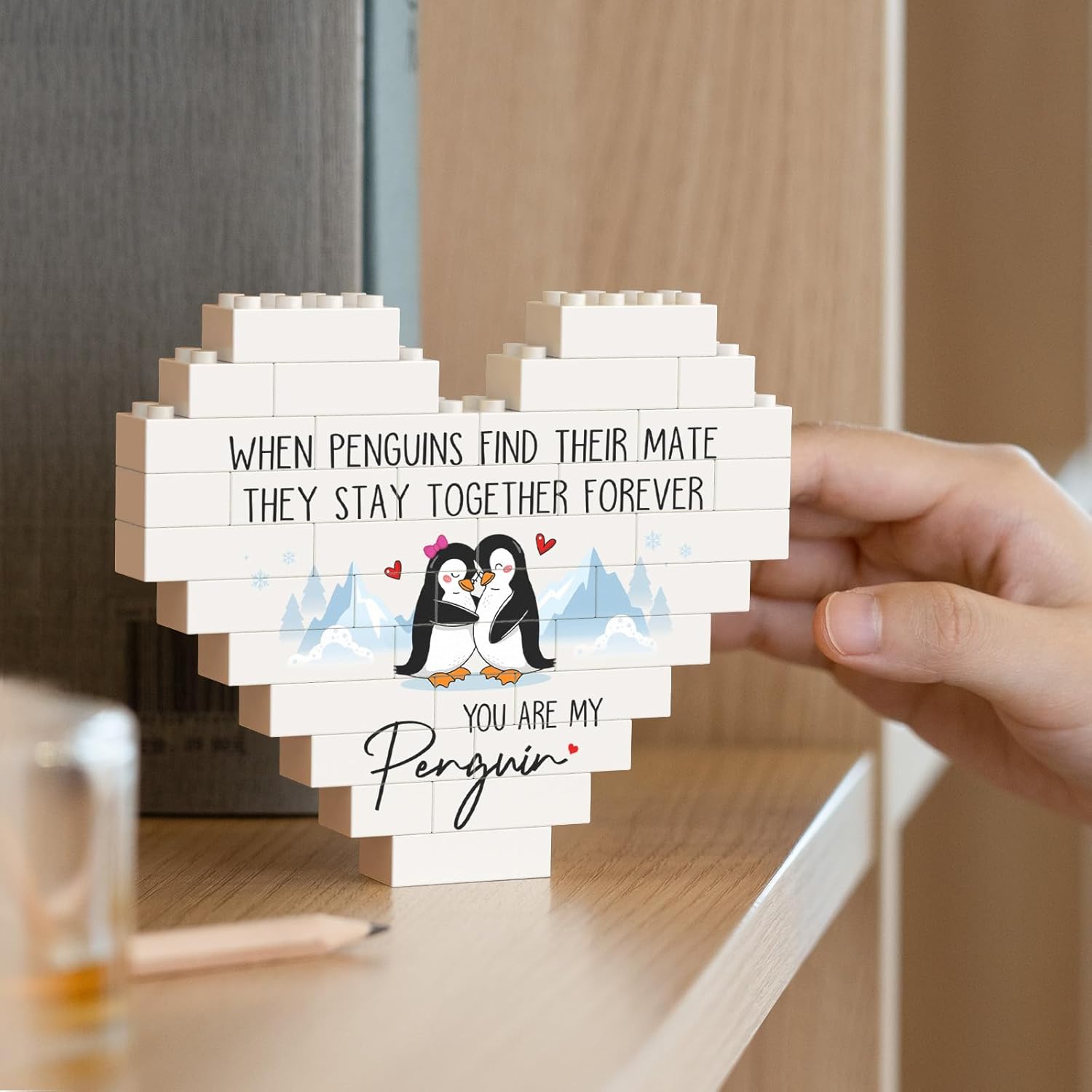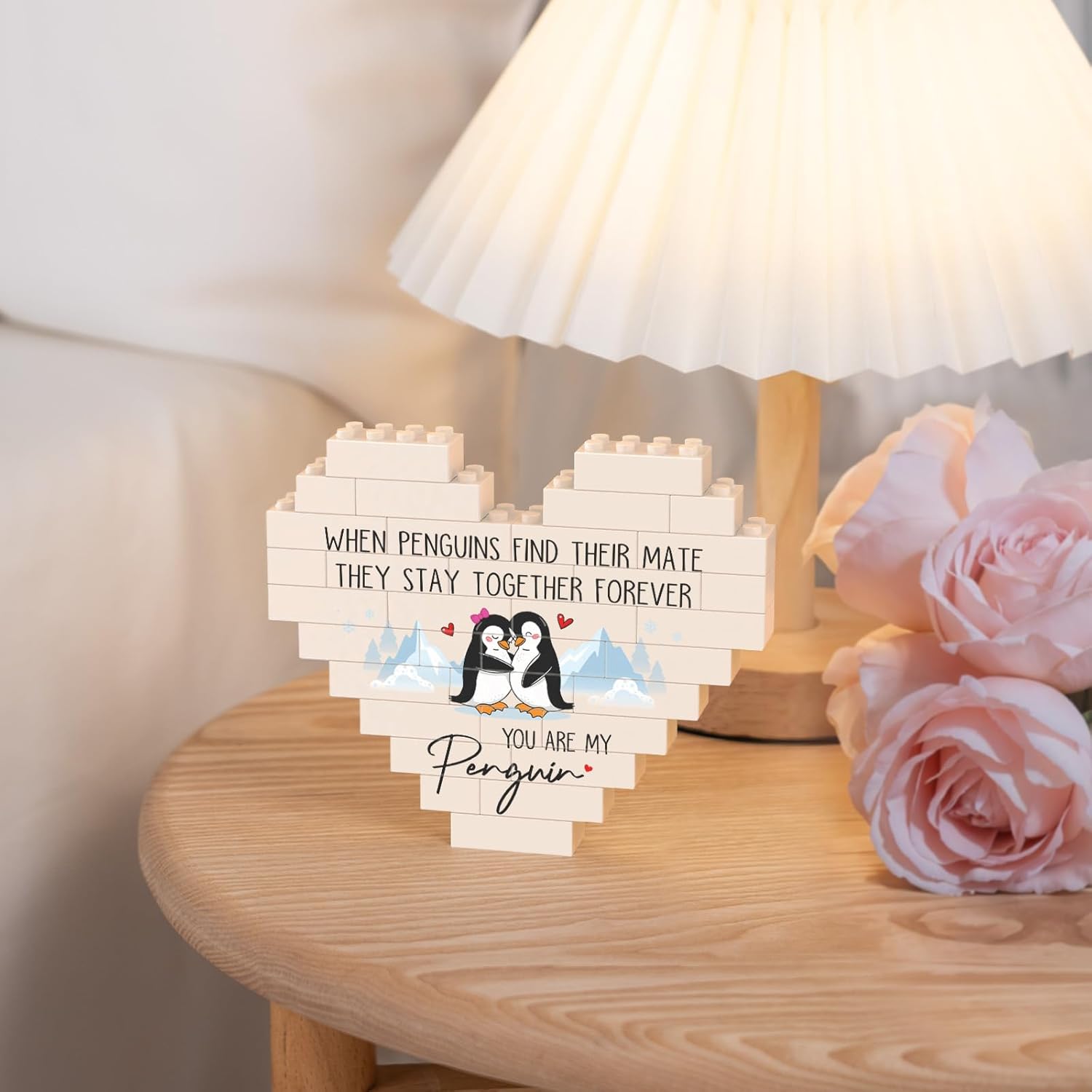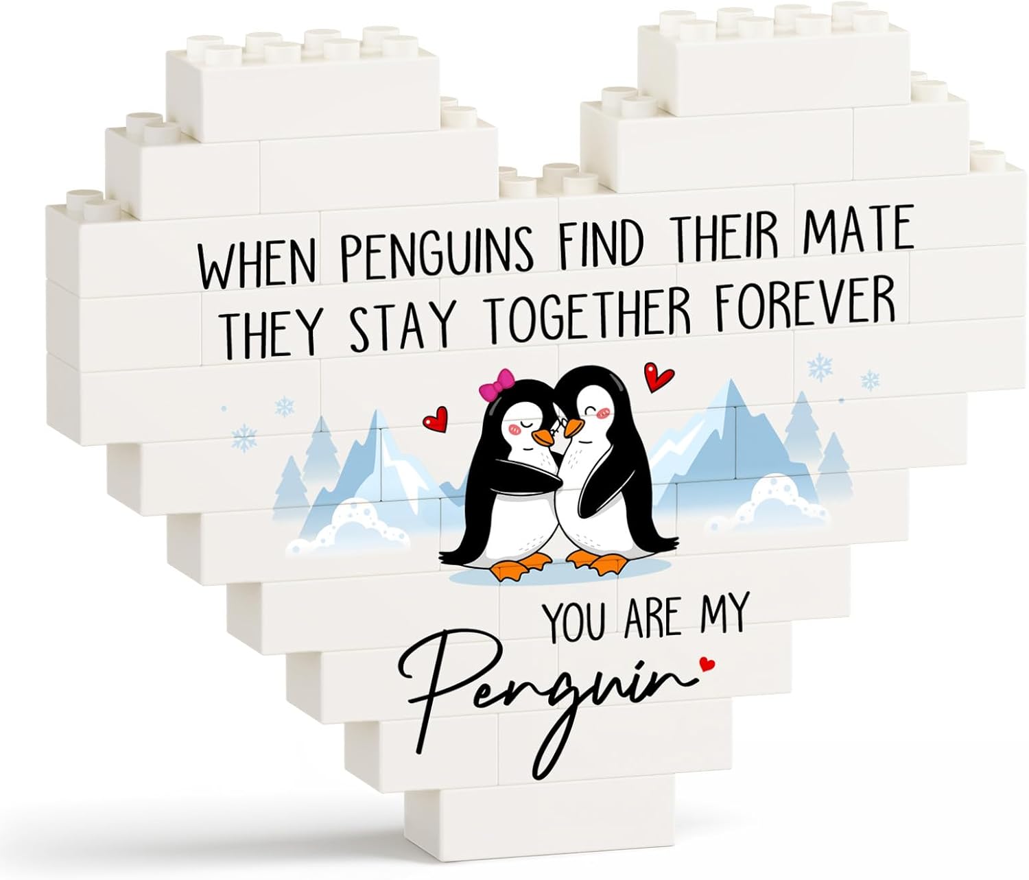 【I Love You Gifts for Many Occasions】This heart-shaped building blocks plaque is themed on penguin’s forever love. The adorable penguin couple depicted on the plaque snuggles together with joyful smiles, adding lovely figures to the heartfelt message. Perfect as romantic i love you gifts for her/him on Valentine’s Day and Christmas, or as anniversary or birthday gifts for girlfriend/boyfriend/husband/wife/couple