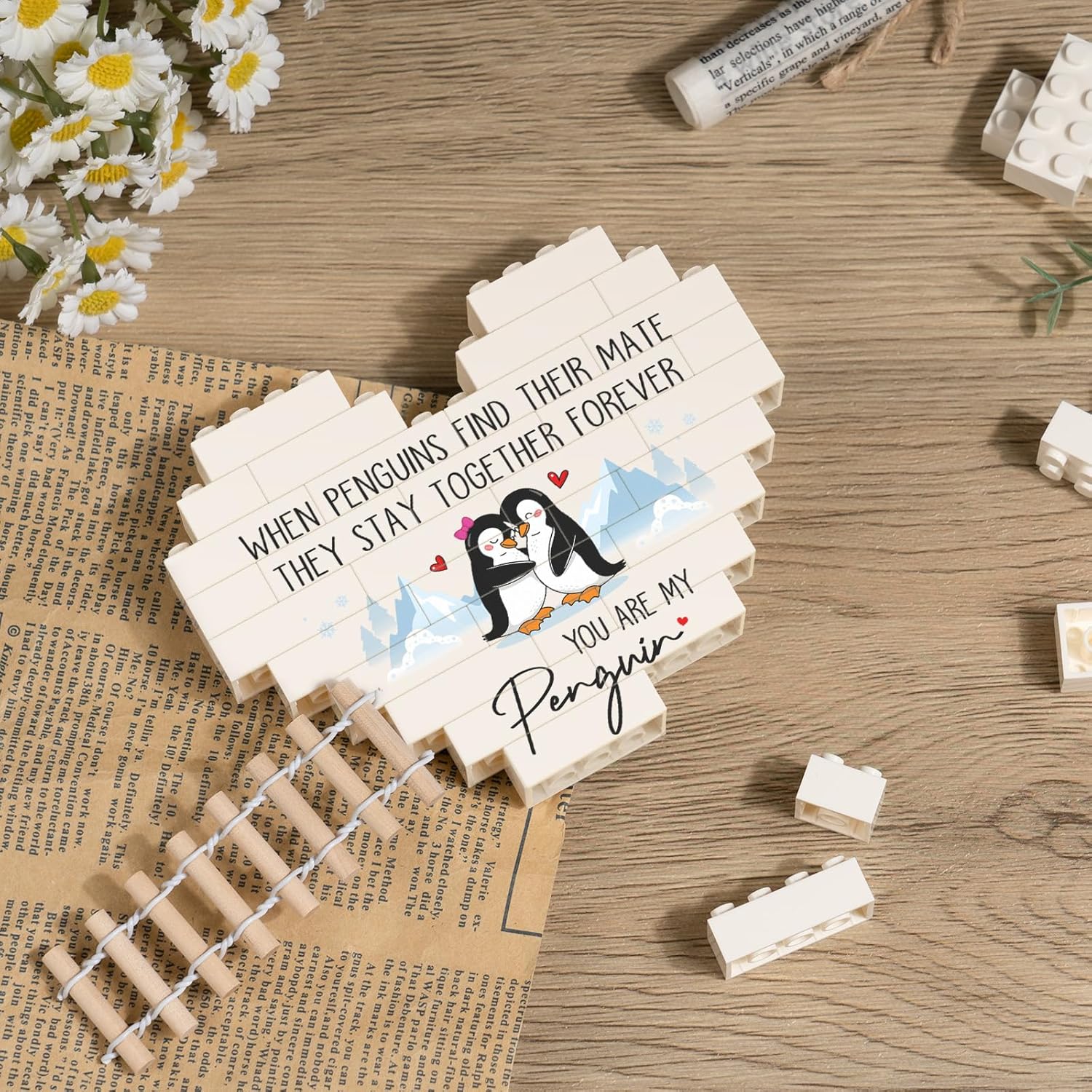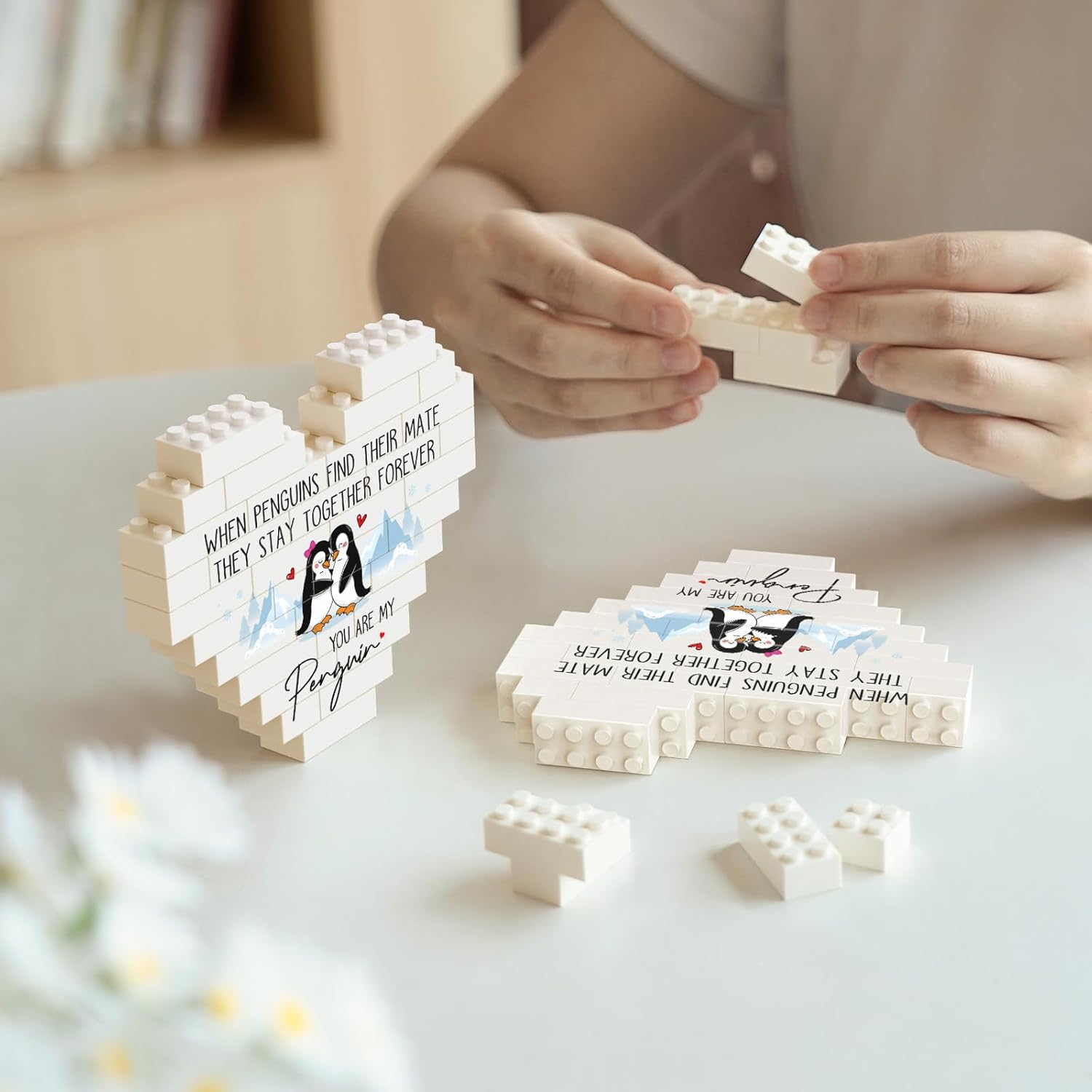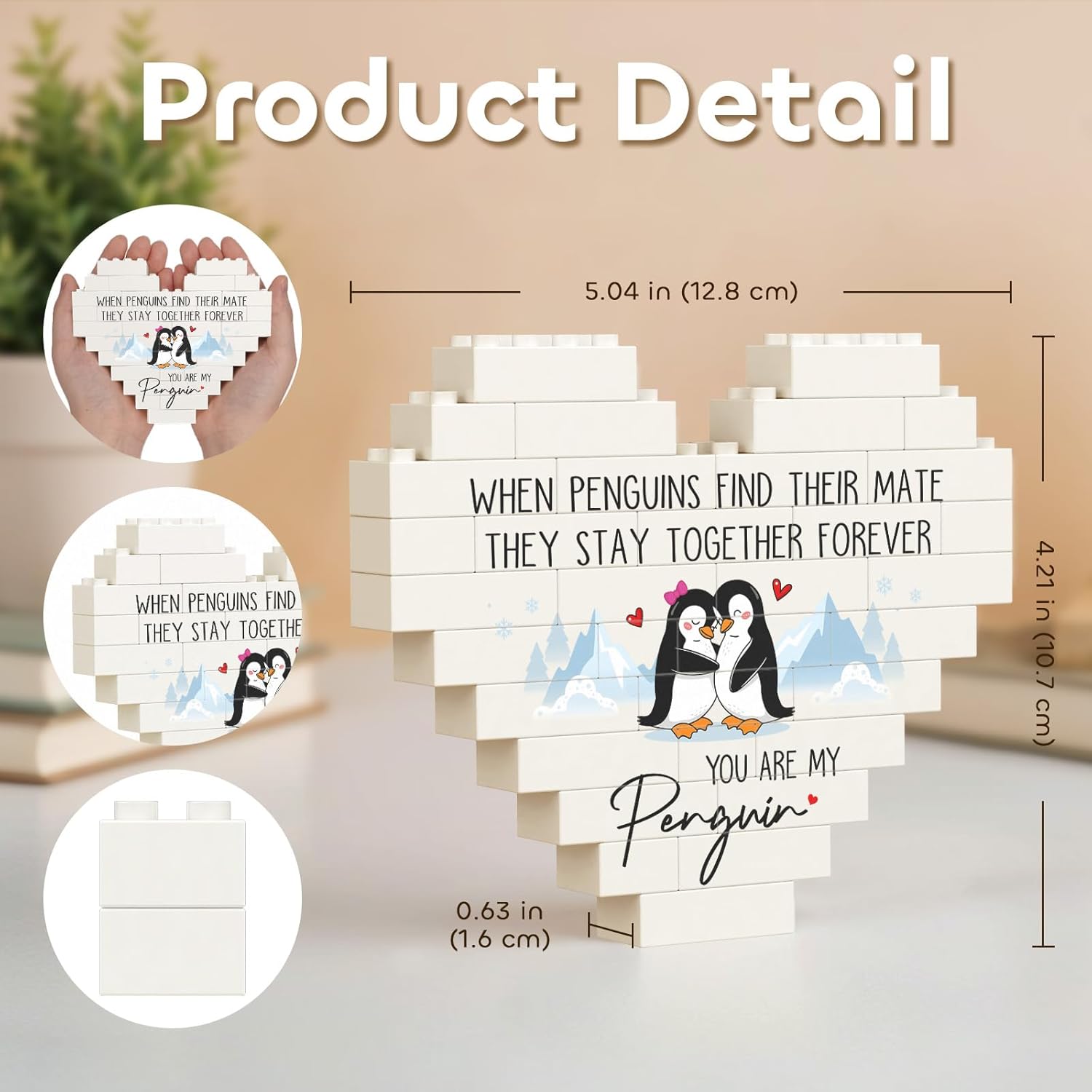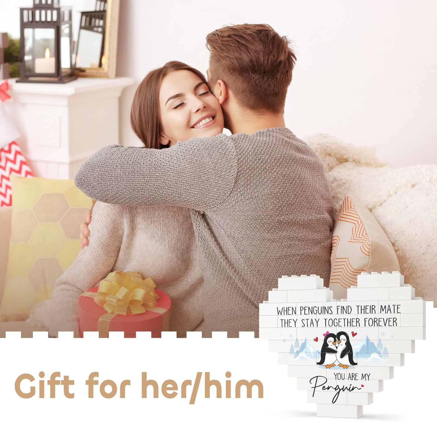 【I Love You Gifts for Many Occasions】This heart-shaped building blocks plaque is themed on penguin’s forever love. The adorable penguin couple depicted on the plaque snuggles together with joyful smiles, adding lovely figures to the heartfelt message. Perfect as romantic i love you gifts for her/him on Valentine’s Day and Christmas, or as anniversary or birthday gifts for girlfriend/boyfriend/husband/wife/couple