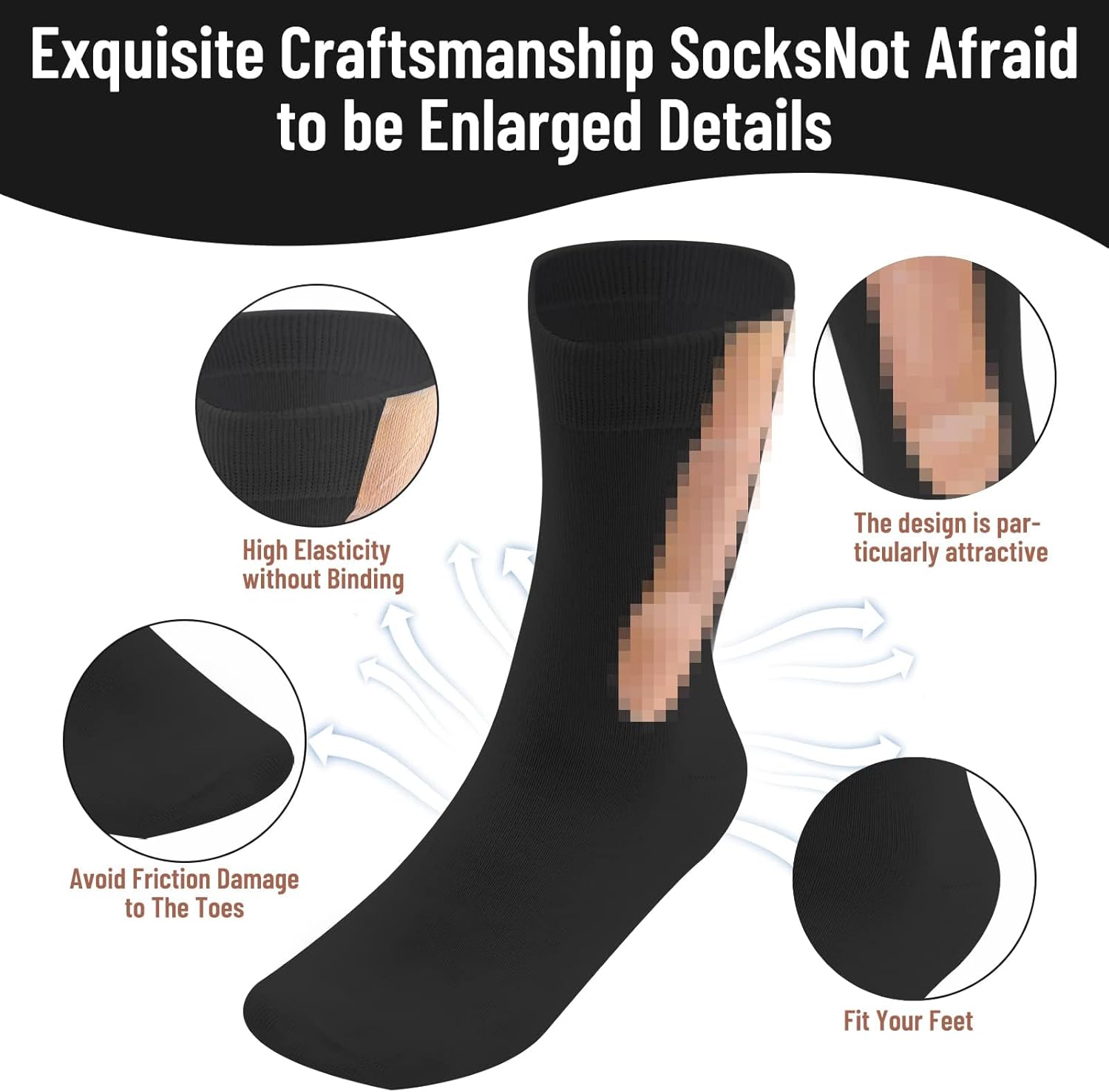 These funny socks are breathable and won’t make your feet hot or stinky. The top of interesting socks is elastic, so that socks can be firmly fixed on your feet when walking or exercising.
