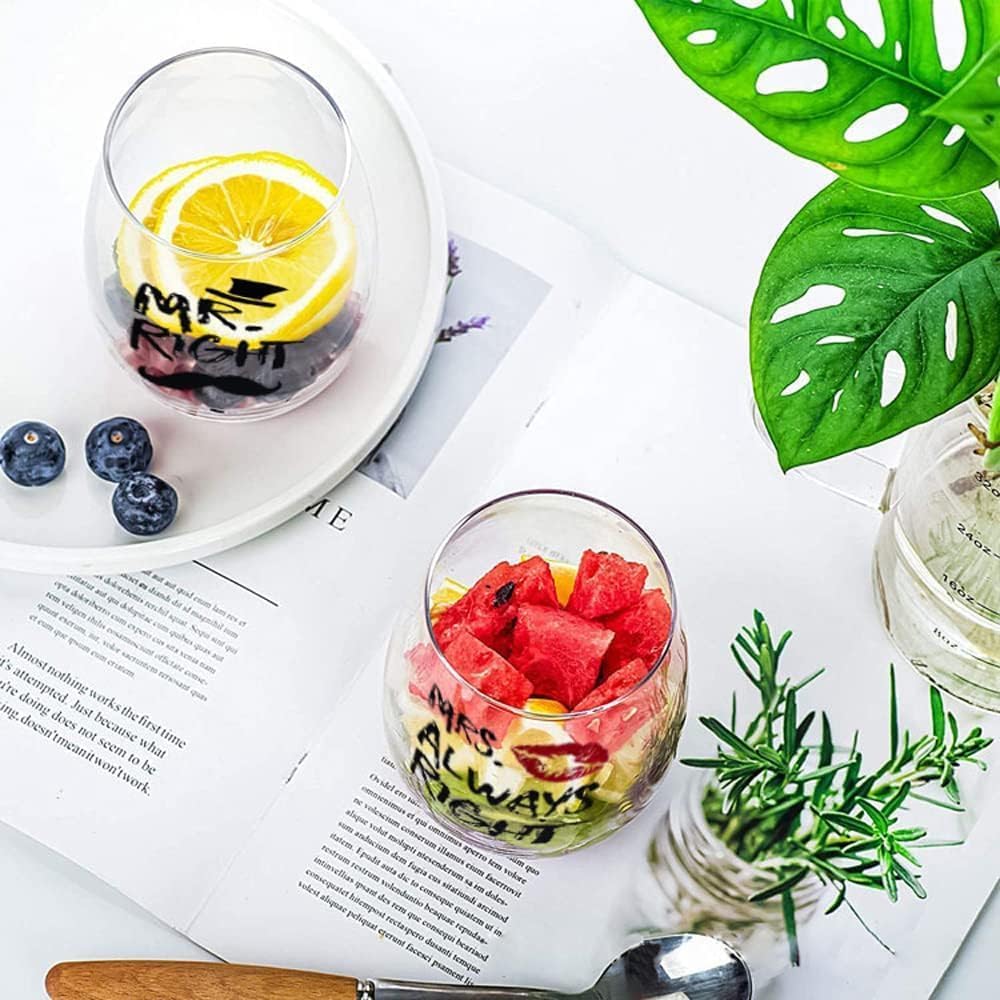 Yalucky Couple Gifts Mr. Right and Mrs. Always Right Stemless Wine Glass Set Engagement Gift Wedding Gift for Couple Golden Wedding Anniversary for Bride and Groom Valentines Gifts for Him and Her