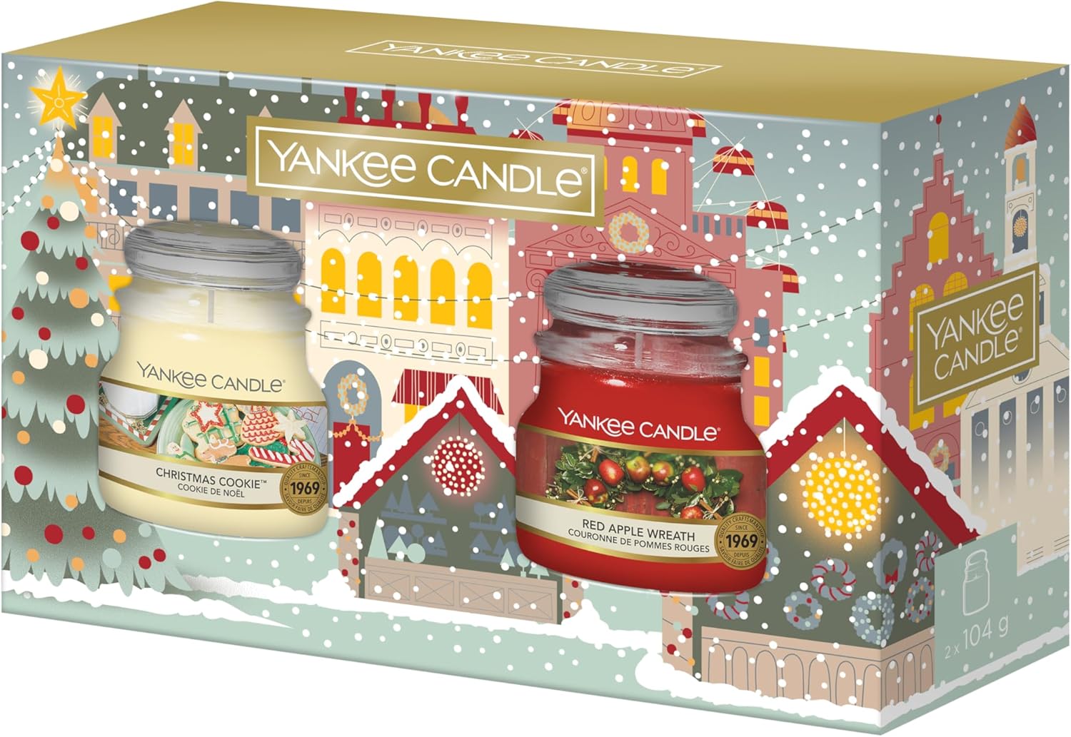 CHRISTMAS SCENTED CANDLES: This gift set features two Small Jar Candles in the fragrances Christmas Cookie and Red Apple Wreath