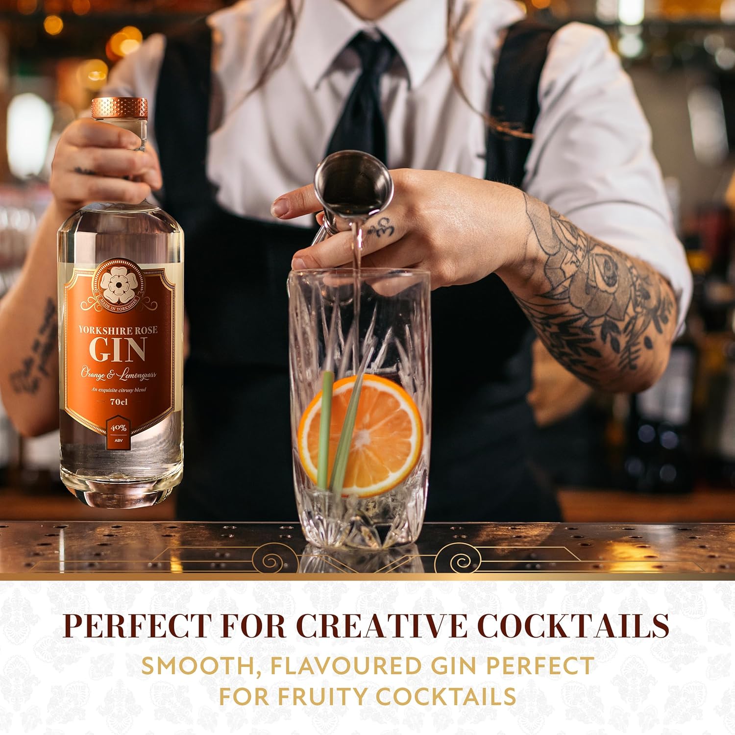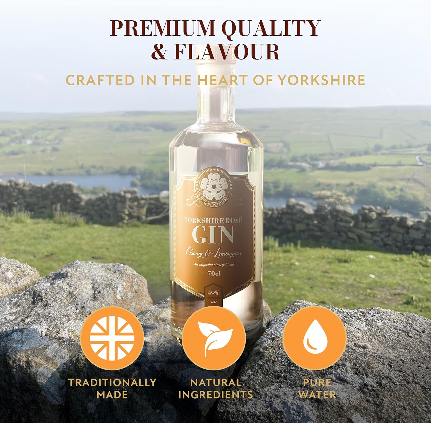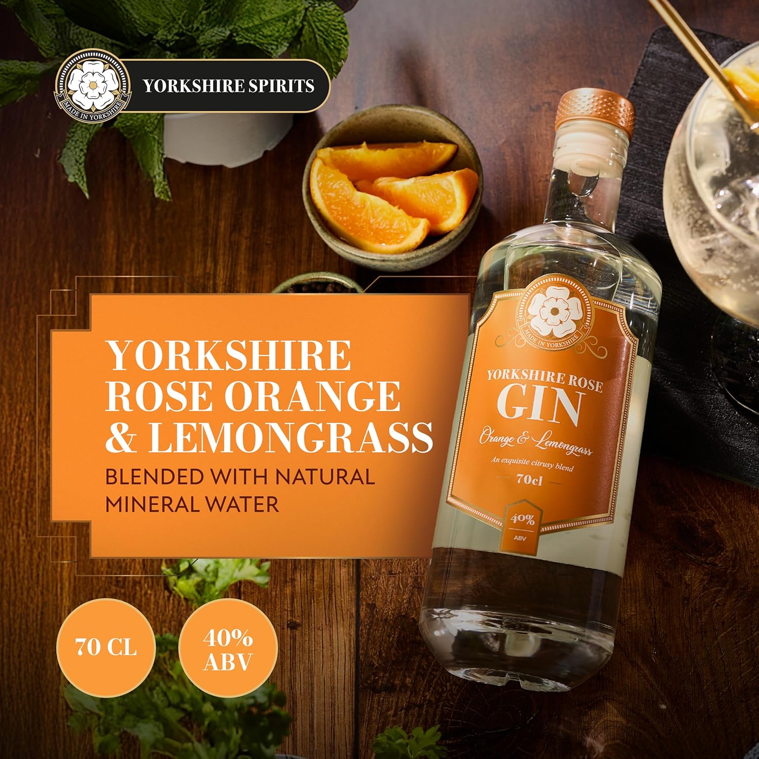 Yorkshire Rose Orange & Lemongrass Gin 70cl (40% ABV) | Flavoured Gin Bursting with Sweet Citrus and a Hint of Eastern Lemongrass | Made with Yorkshire Mineral Water for a Smooth and Refreshing Finish