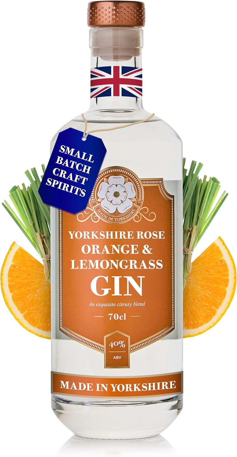 Yorkshire Rose Orange & Lemongrass Gin 70cl (40% ABV) | Flavoured Gin Bursting with Sweet Citrus and a Hint of Eastern Lemongrass | Made with Yorkshire Mineral Water for a Smooth and Refreshing Finish