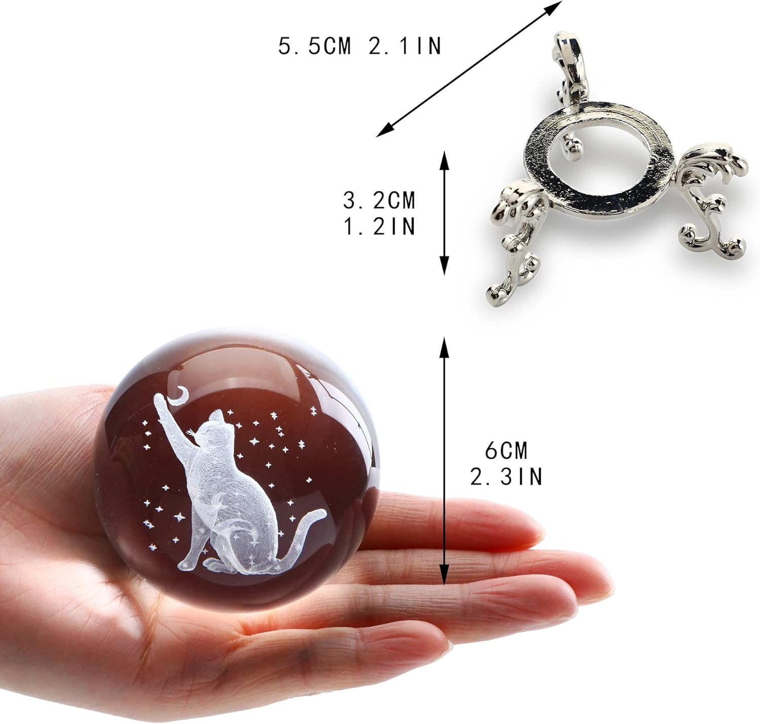 Crystal Ball with Stand: The adorable crystal cat ball is with a metal stand, which can be put sturdy.