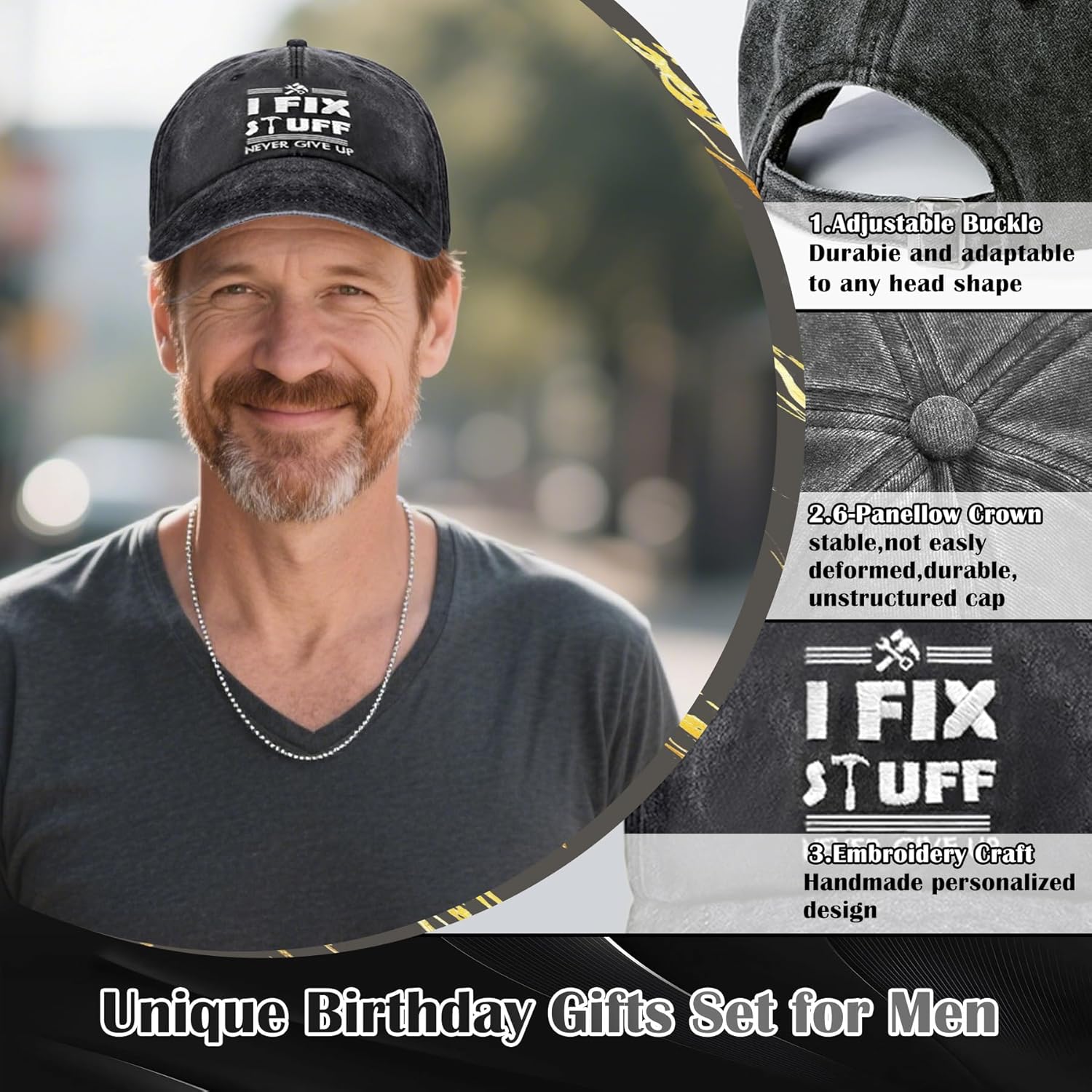【DAD & HUSBAN BIRTHDAY GIFTS】The dad birthday gifts come with 20oz stainless steel tumblers, suitable for many outdoor or indoor occasions such as home, car, office, picnic, hiking, fishing; Baseball cap can be used at outdoor activites; Foldable phone holder is easy to carry and can free your hands when you watch a video; All things in the boyfriend gifts box is very practical and interesting.